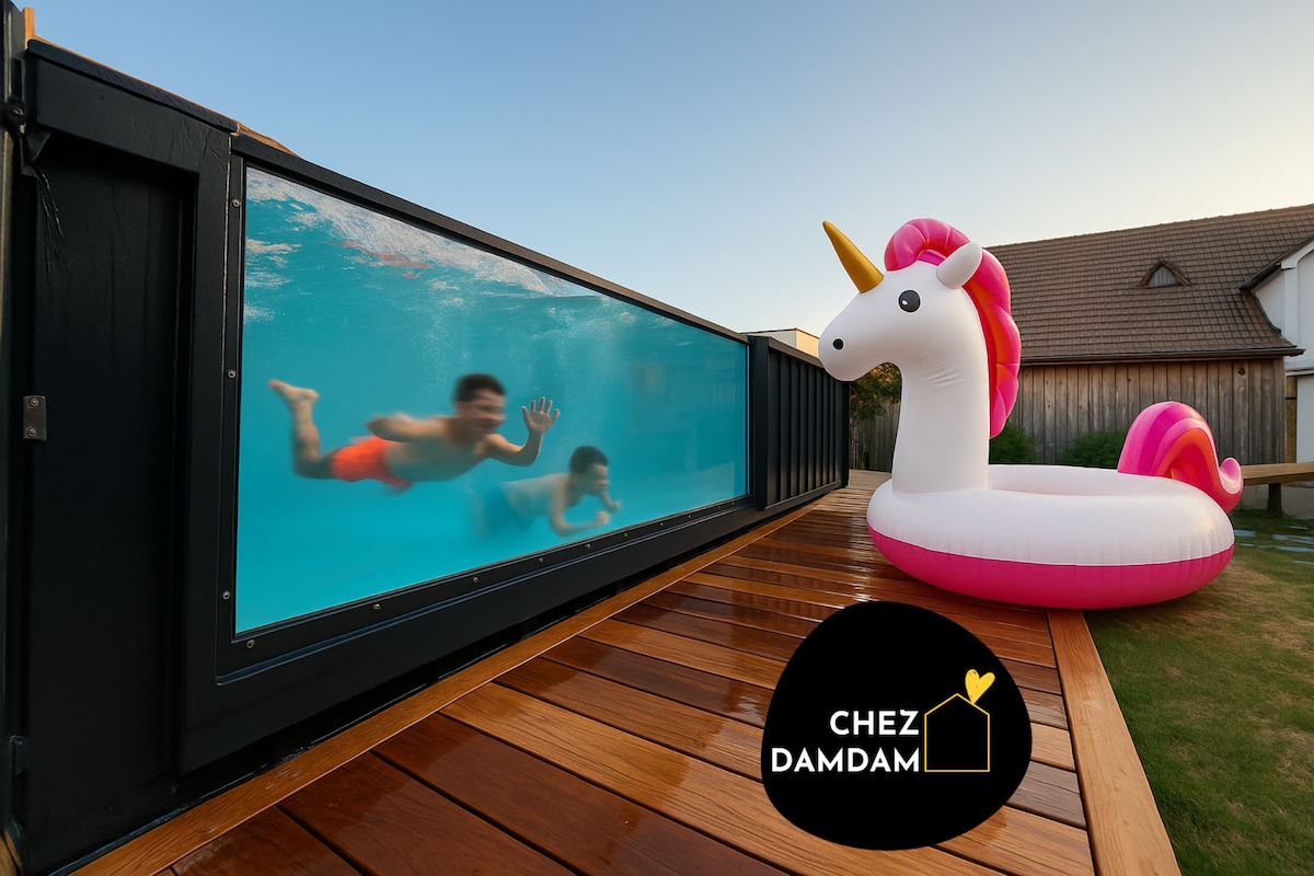 Honfleur (20 min), Deauville (30 min), point de départ idéal pour visiter la Normandie et la côte de Grâce. Cette grande propriété à l’architecture moderne est privative et très équipée pour accueillir les familles: ☆ Piscine intérieure à 30° toute l’année - espace Balneo ☆ Arcades, Baby-foot, Billard, Ping-Pong, Palets, Basket, Trampoline, Balançoire, jouets ☆ 5/6ch- 15 pers- 🐕 Tout inclus pour faciliter votre séjour: ☆ Lits dressés, linge de toilette et de piscine ☆ Equipement bébé ☆ Ménage