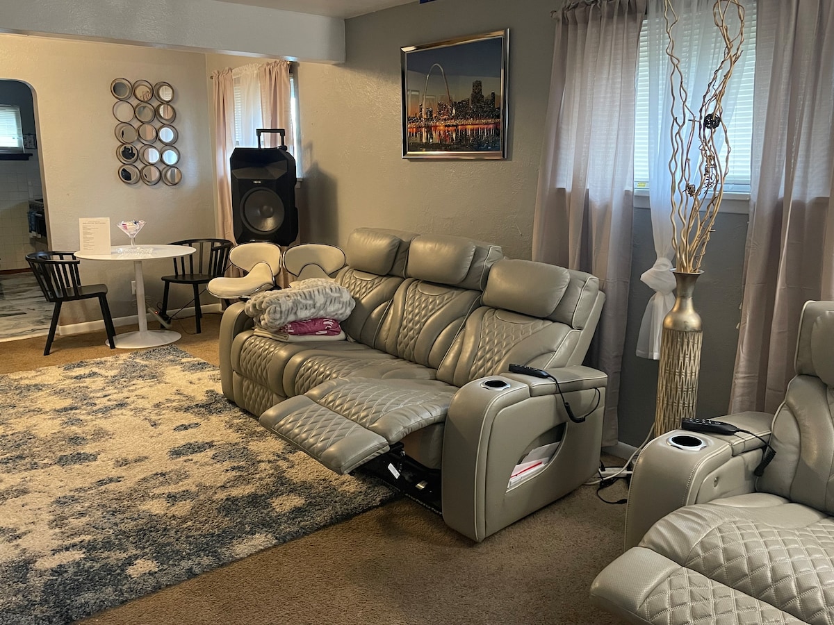 The Luxury Lodge is a Private Residence at Rear of Property with Private Keypad Door Entrance, Private Parking, Outdoor Deck, Dog Run Line and 1/2 acre Fenced Backyard. Kick back & relax in this serene, spotlessly clean, stylish luxury & country living in St. Charles, MO w/ Great Scenic View. Dog friendly, comfy Queen Size Bed, Love Seat, Queen Sleeper Sofa, Large Stone Fireplace, Huge Bathroom, Rain Shower, Private Powder Room, Large Screen TV, Cable & Streaming, Kitchenette, Fridge & Dresser.