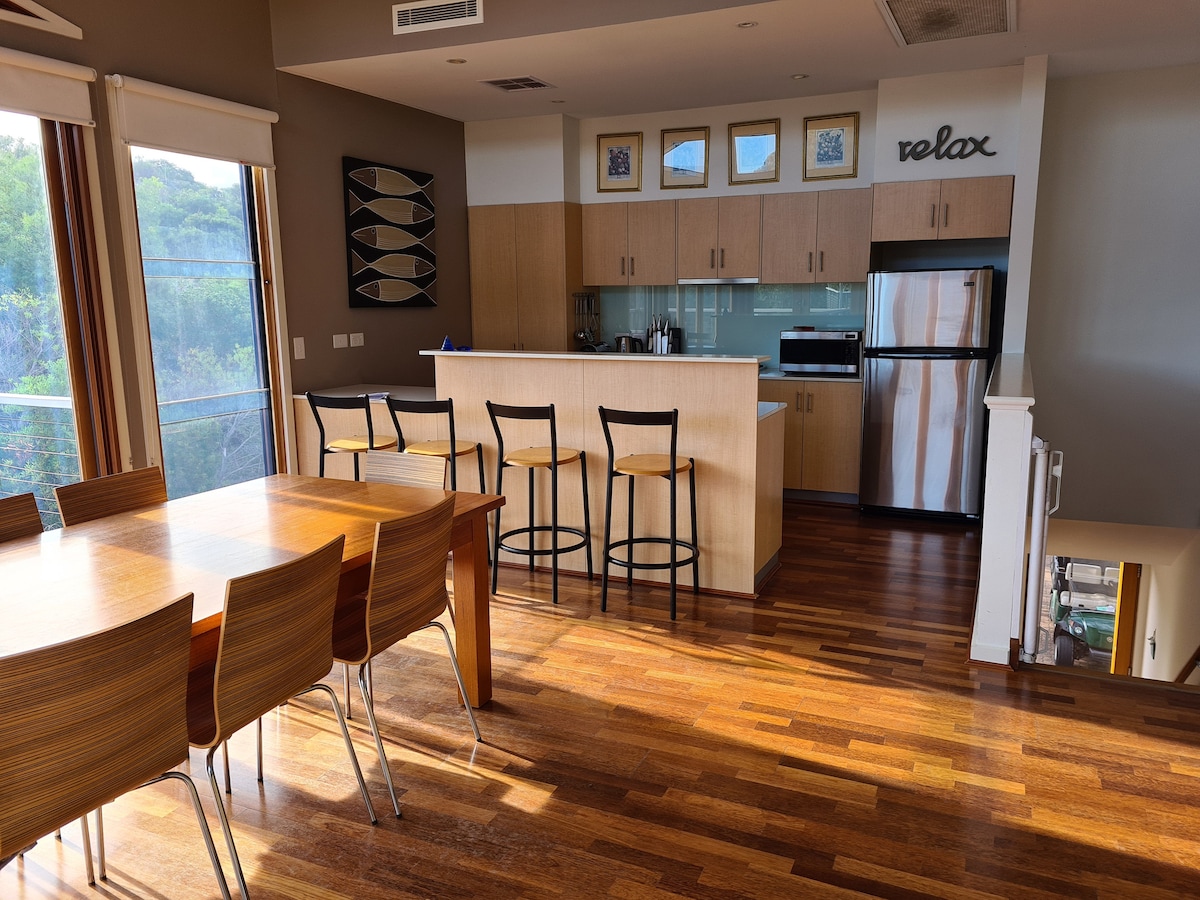 Come and relax at 'Taronga' - a five minute walk to Carrickalinga’s pristine beach - one of SA’s most beautiful stretches of coast. Our home is large and well-appointed - it offers space, privacy and all creature comforts. There's a slow combustion fire for the cooler months (we provide wood ), a fully equipped kitchen, multiple lounge areas, outdoor eating/deck with Webber BBQ, a dedicated TV room, 2 bathrooms, and a laundry. You'll also find free WIFI, board games, books and table tennis!
