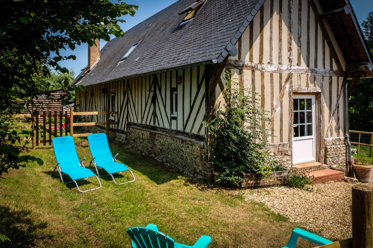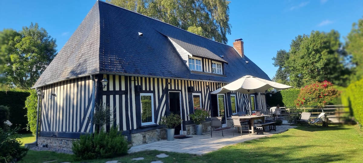 Maison à colombages située à 10mn de l’A13 et à 19 km de Deauville, Trouville, Cabourg et Houlgate. La maison a été rénovée en 2020 et peut accueillir jusqu'à 8 personnes. Elle dispose de trois chambres : Deux chambres double, une chambre de quatre lits. A votre arrivée, les lits sont faits. La maison est raccordée à la fibre Orange. Vous serez contacté par Julie qui vous partagera les plus beaux sites à découvrir en Normandie et les bonnes adresses. Nous serons ravis de vous recevoir.