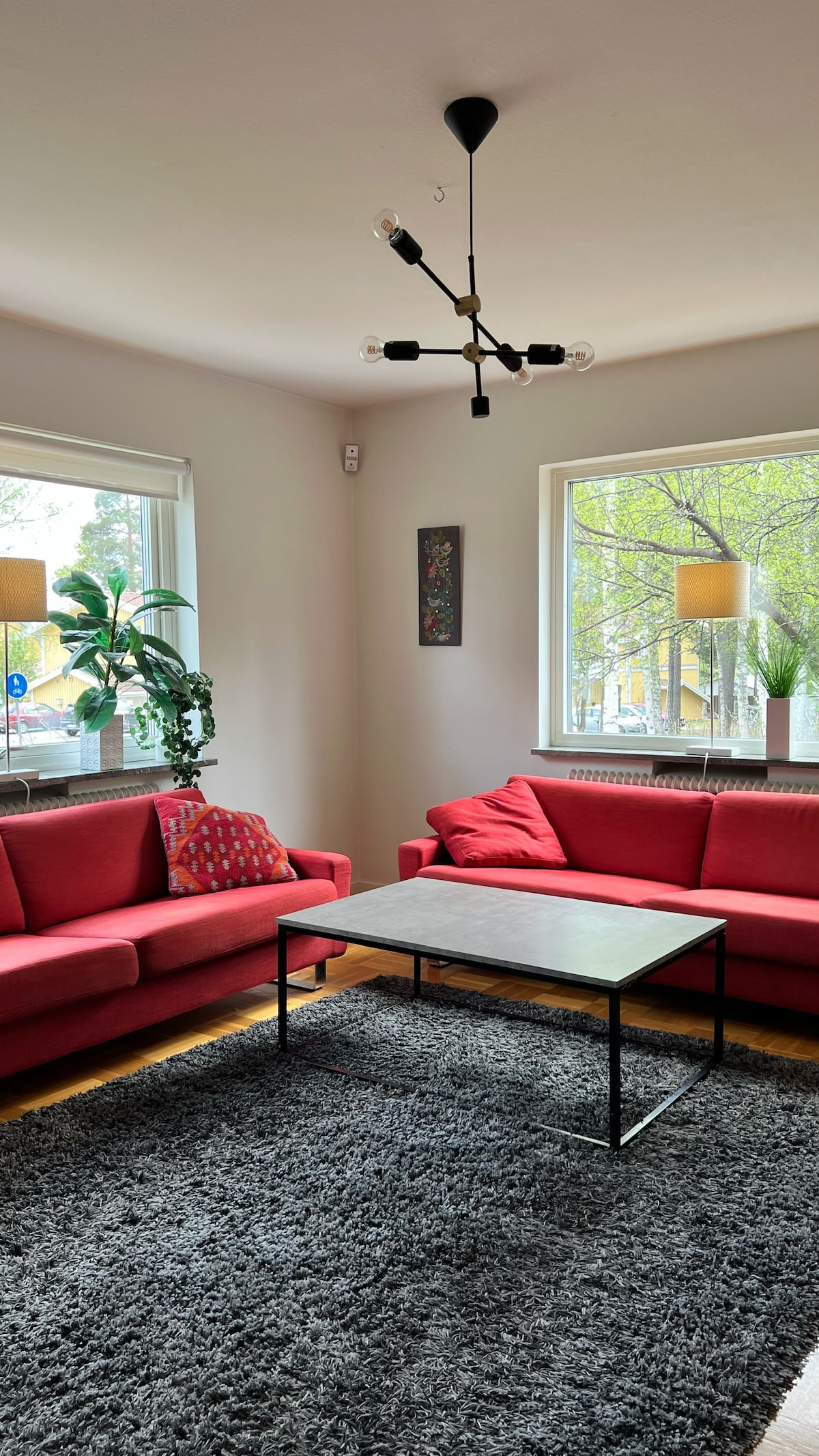 Live 5 km from Luleå city center in this modern villa in Hällbacken. Ground floor: -Pleasant outdoor patio -Modern fully equipped kitchen -Bathroom, washer/dryer -Living room -Bedroom King Size bed Upper floor: -Living room with a view over Björkskatafjärden -Bathroom/Sauna -2Bedrooms -Outdoor Hottub area(shared) Public transportation with connections to city, Walking/biking distance to Björksgatan center. Bicycles available to borrow. 5km to the University. 30minute drive to Stegra.