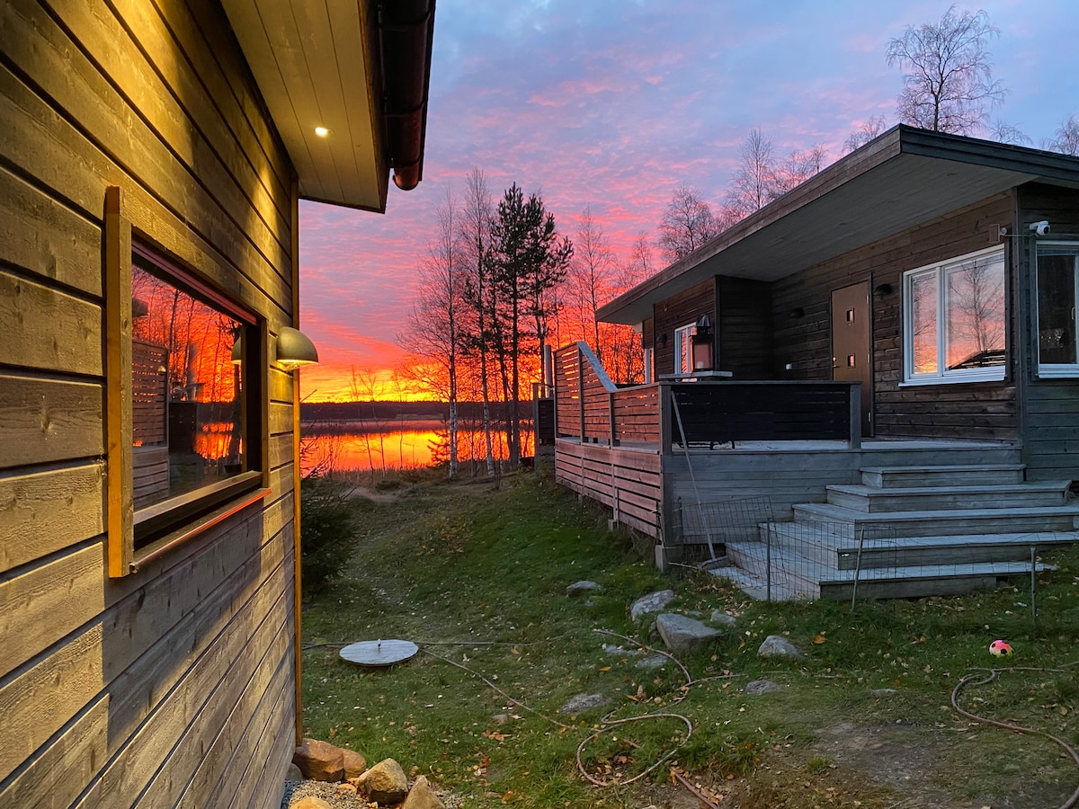 Slappna av i detta unika och lugna boende vid vattnet. Vintertid finns skoterspår och skidspår, och gott om mörker med bra möjligheter att se norrsken. Sommartid finns bra fiske direkt utanför boendet. Uteplats med eldstad finns tillgänglig året om. Passa på att njuta av utsikten och norrskenet vid en öppen eld. Kiruna Centrum: 10 minuter med bil - 10 km Jukkasjärvi/Icehotel: 5 minuter med bil - 4 km Kiruna Airport: 11 minuter med bil - 11 km Busshållplats: 700 meter promenad