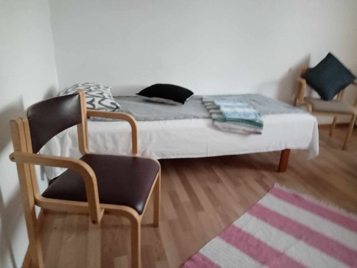 Everything you want to explore is right outside the door of this place. You can find shops, restaurants, bars, public swimming pool and easy access to hike paths in the forest or by the lake. The room has two separate single beds, a dedicated workspace and a private bathroom so you can enjoy your stay at maximum confort. Our super friendly stuff will be available during your stay to help and guide you with everything you need.