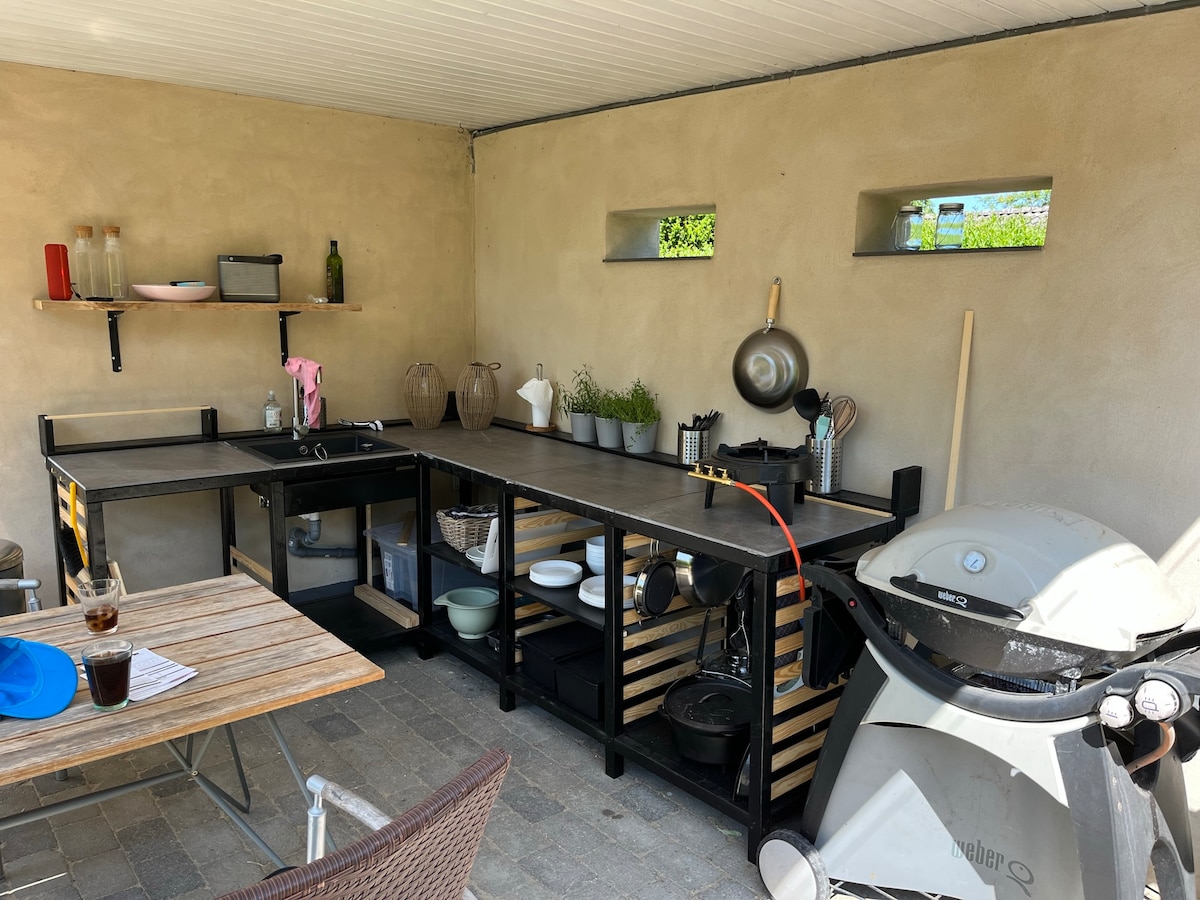 Enjoy our cozy apartment, in a quiet and charming historical neighborood, next to Fælledparken (the biggest park in Copenhagen), and a few minutes by bike from the center of the city. The house can host 5 adults + 1 baby/kid. It has 2 bedrooms, one large living/dining room, a kitchen with island, 2 bathrooms (1 large and 1 small), with a cozy front yard and a very peaceful backyard, both equipped with dining and sitting areas. The house is kid-friendly and pet-friendly!