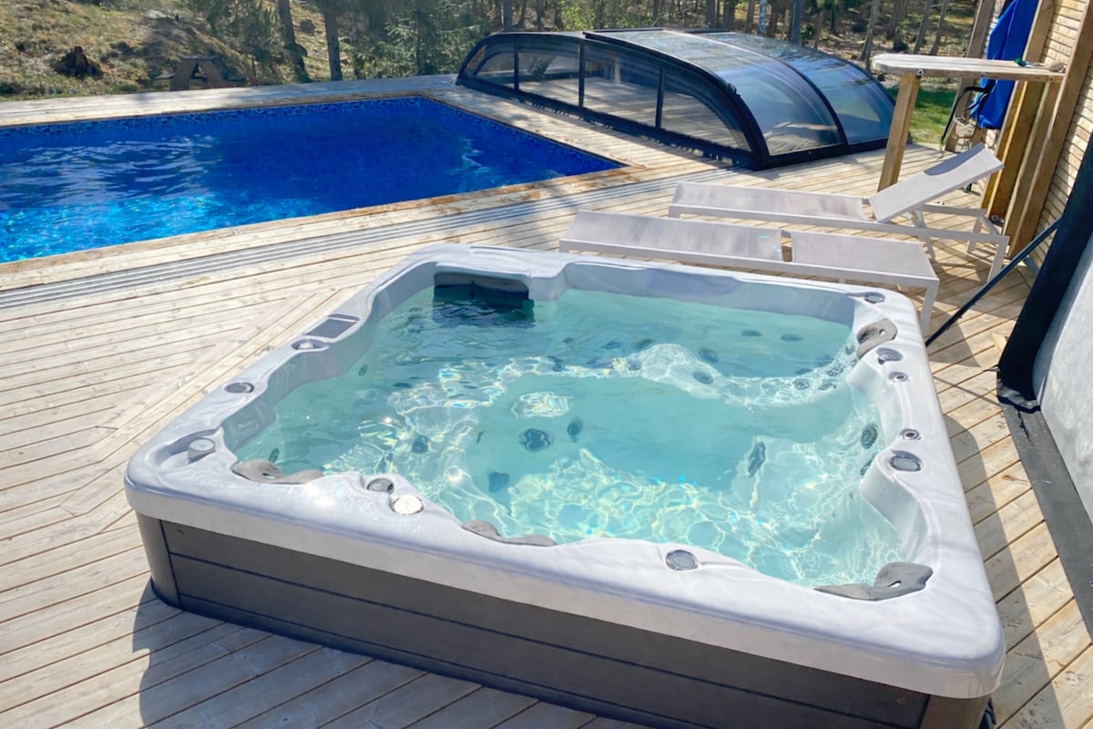 带泳池和按摩浴缸的舒适小屋