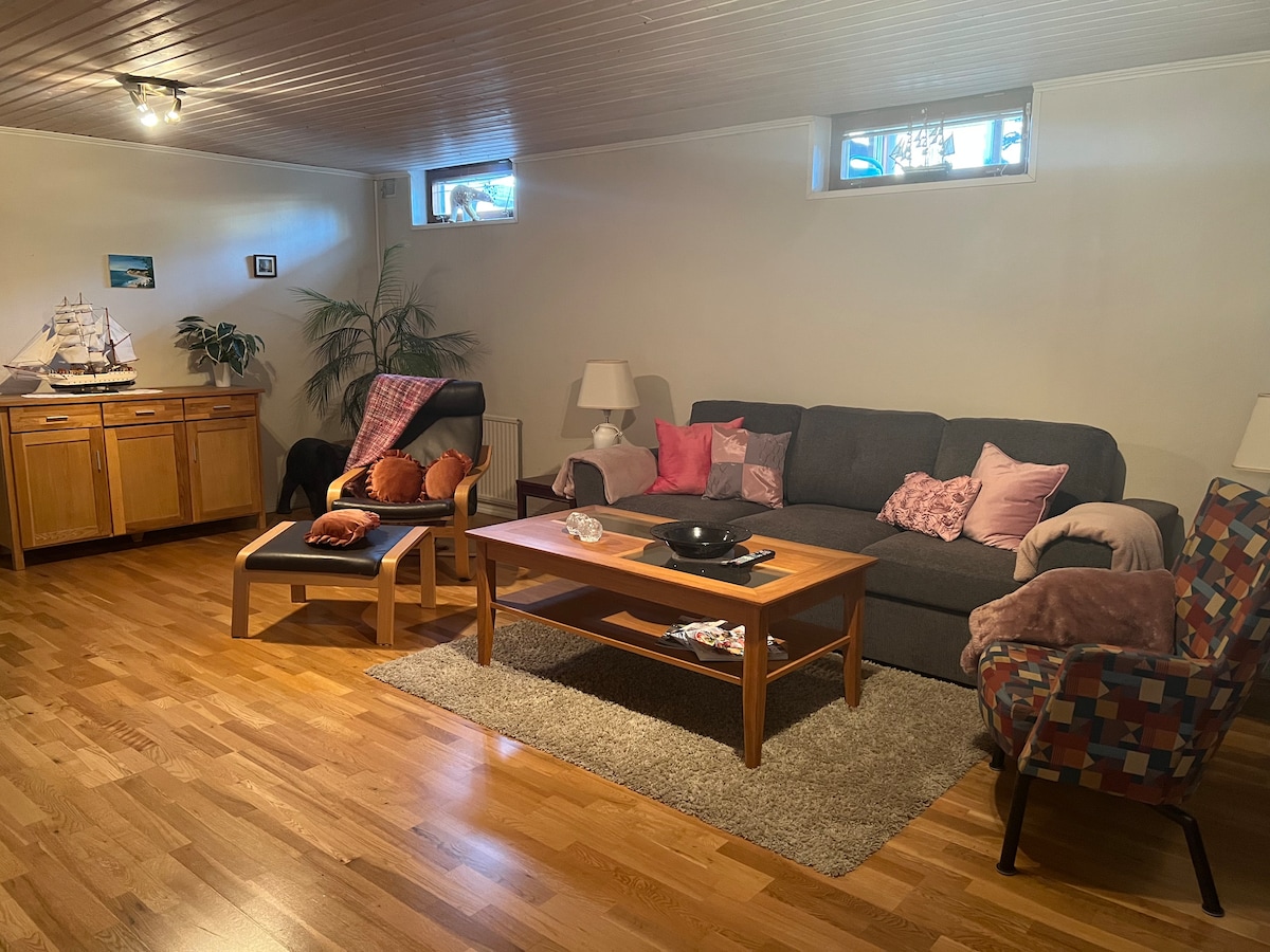 Koppla av med hela familjen eller vänner i detta fina boende. 118 kvm, 3 sovrum, uteplats och balkong. Nära till bad och natur, tex. Skiren, Ågelsjön,Glottern och Gransjönäs. Lugn miljö, 7 km till Norrköping, 19 km till Kolmårdens Djurpark. 1 km till till mataffär, apotek, restaurang, frisör mm. Uteplats med grill och en gräsmatta där man kan spela kubb m.m. Tv med Netflix, HBO/MAX och Prime. Resesäng finns, säg till innan. Gratis parkering. Lakan, handdukar och städning ingår i priset.