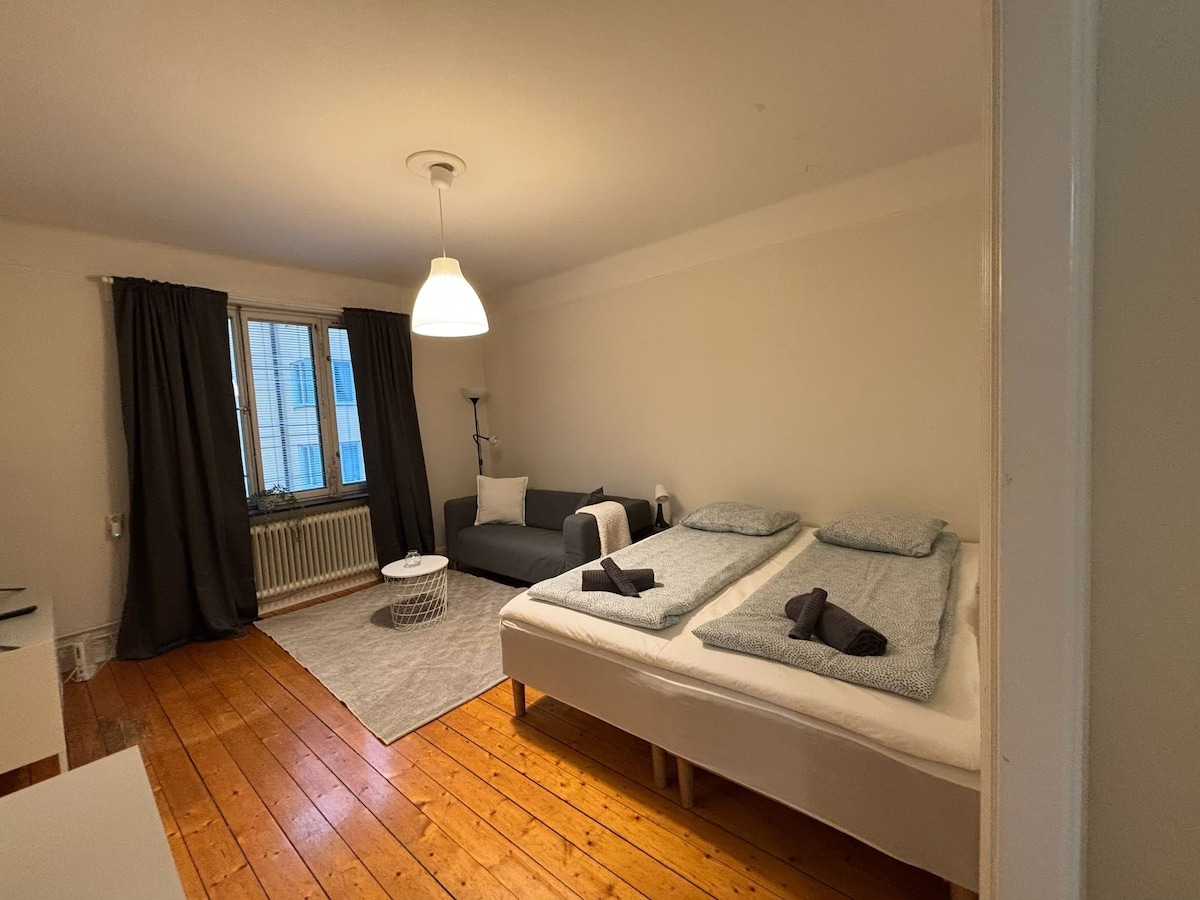 Newly bright and modern furnished 100 SQM. The apartment is close to shopping and a variety of restaurants and pubs. The apartment is bright and has a hotel-like interior with modern design. The apartment is well suited for you traveling alone, Family or in company of two. The apartment offers free Wi-Fi, two comfy 160cm wide bed, a nice seating area and a fully equipped kitchen. The apartment is bright and newly renovated and is the perfect stay for a weekend or longer visit here in Stockholm