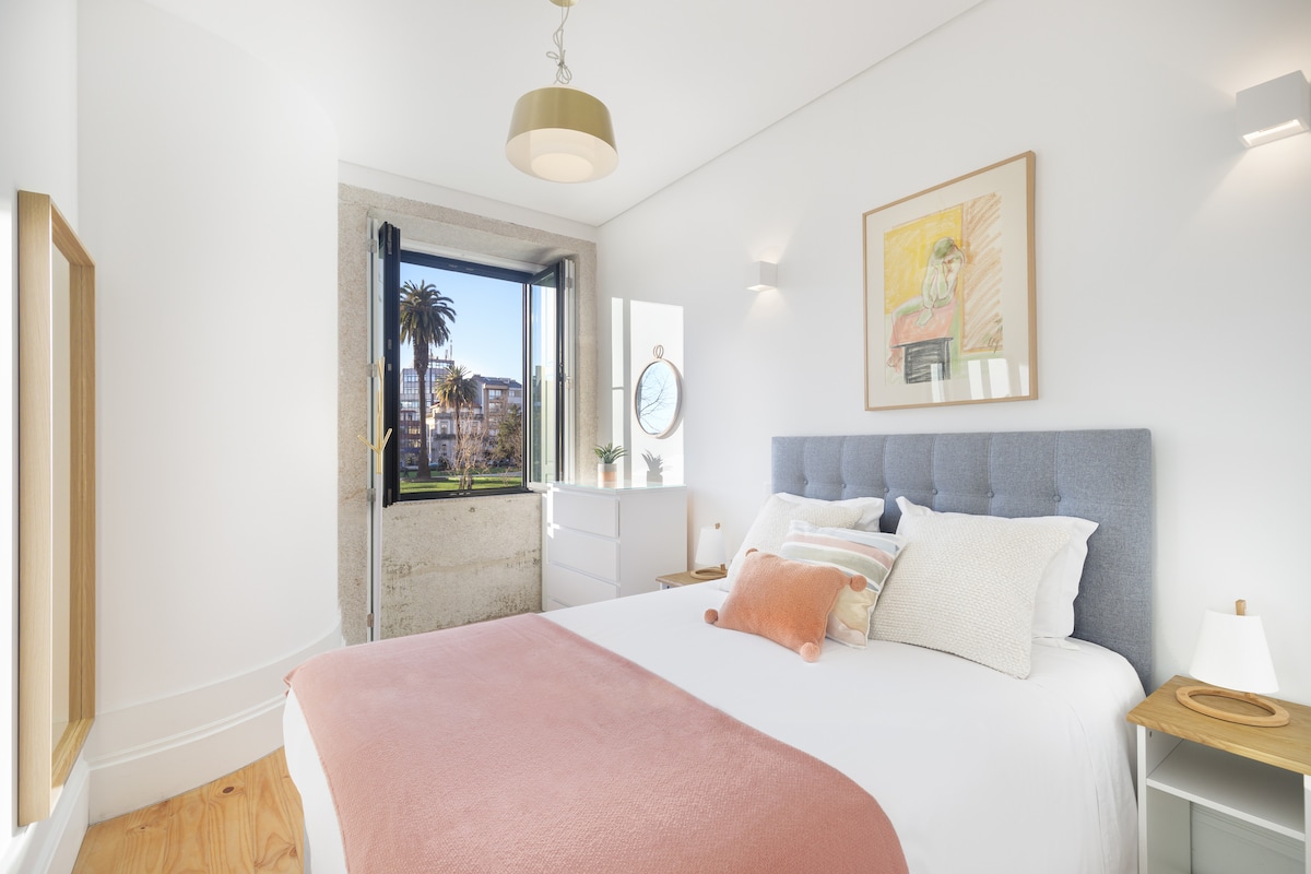 ✔ DU Bocage House “fantástico / excedeu… / incrível, muito espaçoso, limpo”. ✔ Na melhor localização para evitar zonas ruidosas e com trânsito caótico. ✔ Próximo das saídas da Ponte da Arrábida. Garagem grátis no edifício. ✔ No limite do Centro, entre a fantástica Casa da Música (800m) / Metro e os Jardins do Palácio de Cristal (800m). Com Wifi e Ar condicionado (3 splits) soberbos. ✔ Estação de Metro a 12 min a pé. Centro Histórico de metro (5 min), a pé (30 min) por belos percursos.