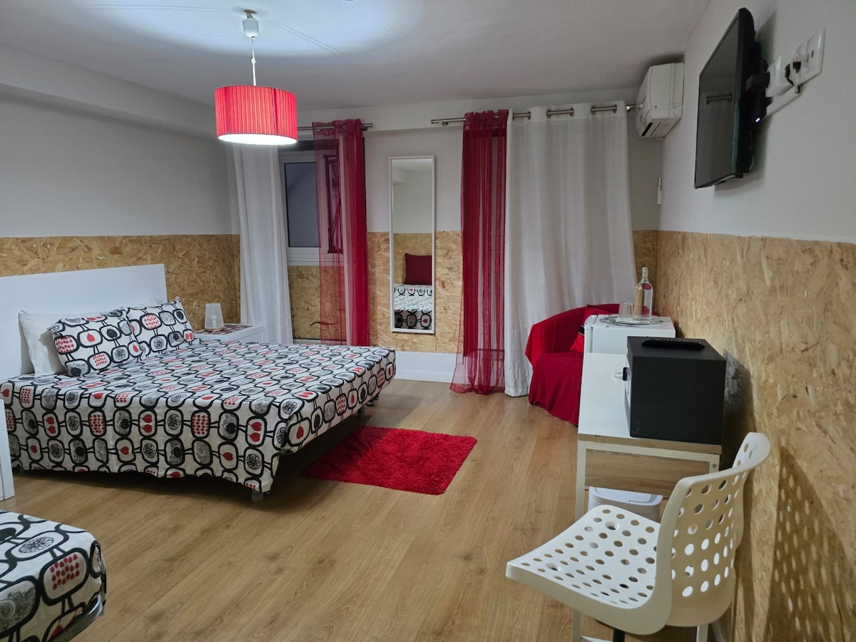 O Quarto Duplo com Casa de Banho Privativa é ideal para até três pessoas. O espaço tem 37 m² e dispõe de uma cama de casal grande e um sofá-cama, proporcionando flexibilidade para diferentes tipos de hóspedes. Este quarto inclui uma casa de banho privativa com duche, garantindo mais privacidade, além disso, conta com secador e os itens básicos. Possui também uma cozinha equipada, com frigorífico, televisão, e ar condicionado, ideal para obter tranquilidade.
