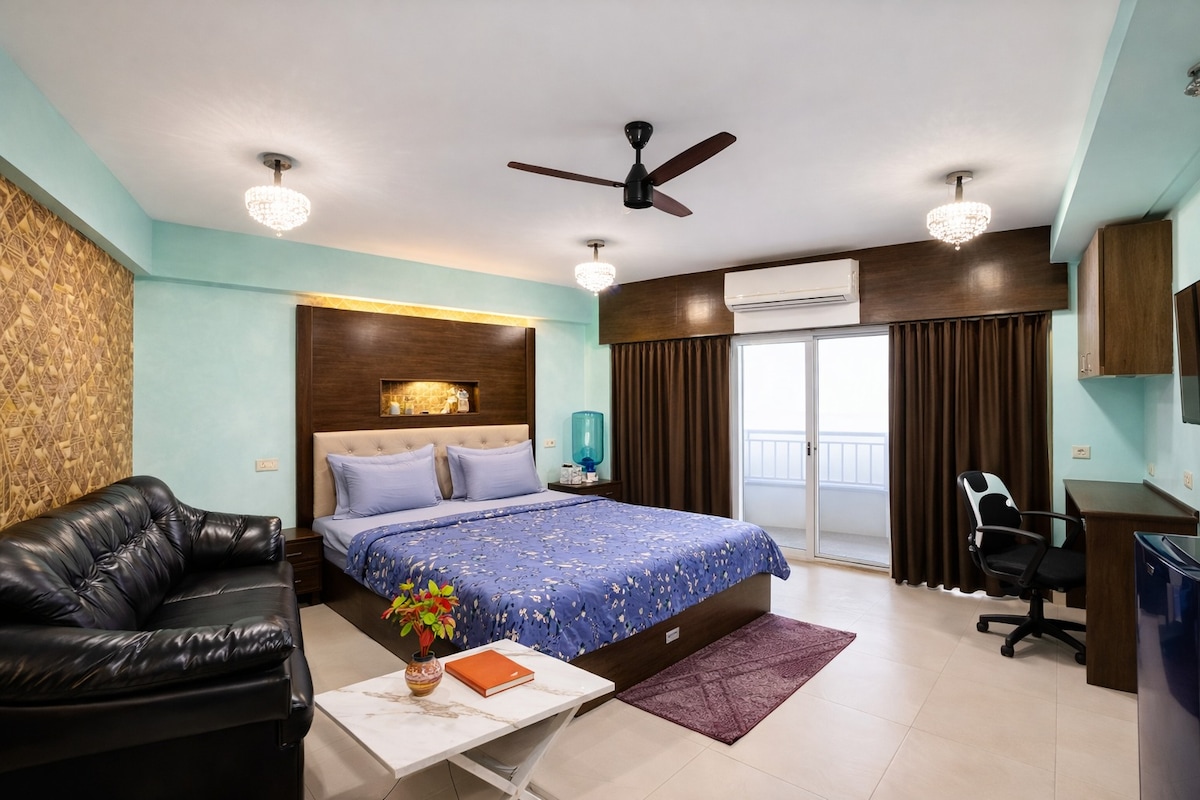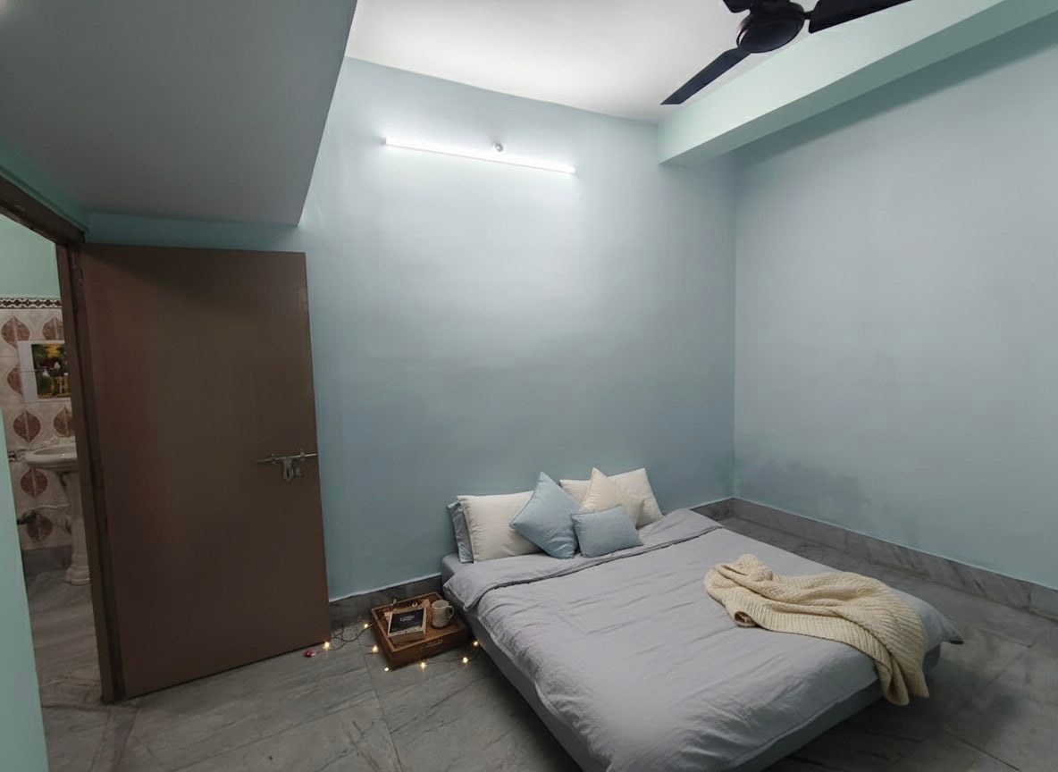 A spacious, sunlit apartment that captures the charm of old Kolkata. The 408 occupies the entire first floor of a lakeside property in Jodhpur Park — one of South Kolkata’s most peaceful neighborhoods. The rooms are large, the ceilings high, and the hall opens to a view of the waterbody where the sun sets every evening. It’s simple, nostalgic, and full of warmth — ideal for guests who appreciate character and space over luxury polish.