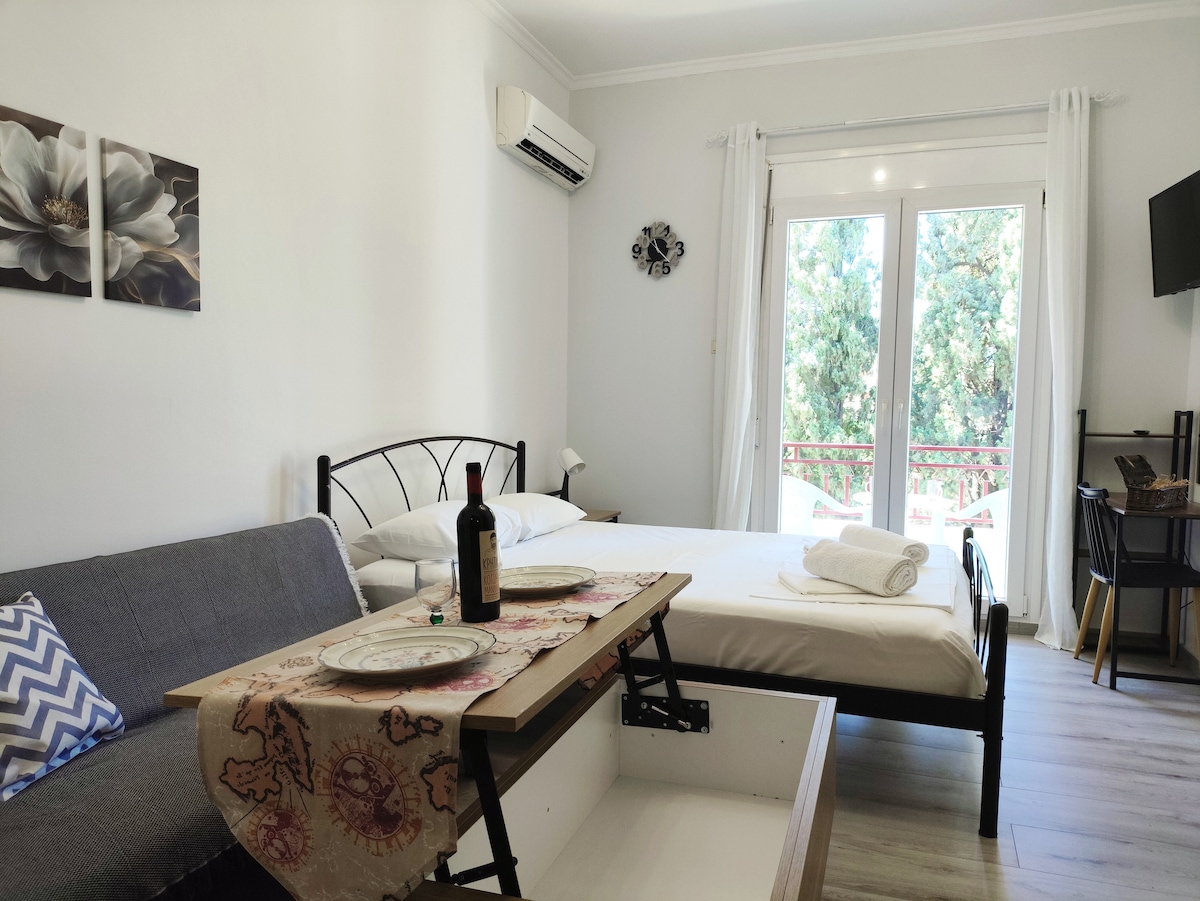 A private rooftop escape in the heart of Chios town! This modern studio apartment offers a peaceful stay with a stunning panoramic view of the Aegean Sea. It's highlight? A huge private terrace with lounge chairs, dining table, and breathtaking views of the sea and sunrise. Ideal for solo travelers, couples or digital nomads looking for comfort, calm, and convenience – all just steps away from cafes, shops, and the port.