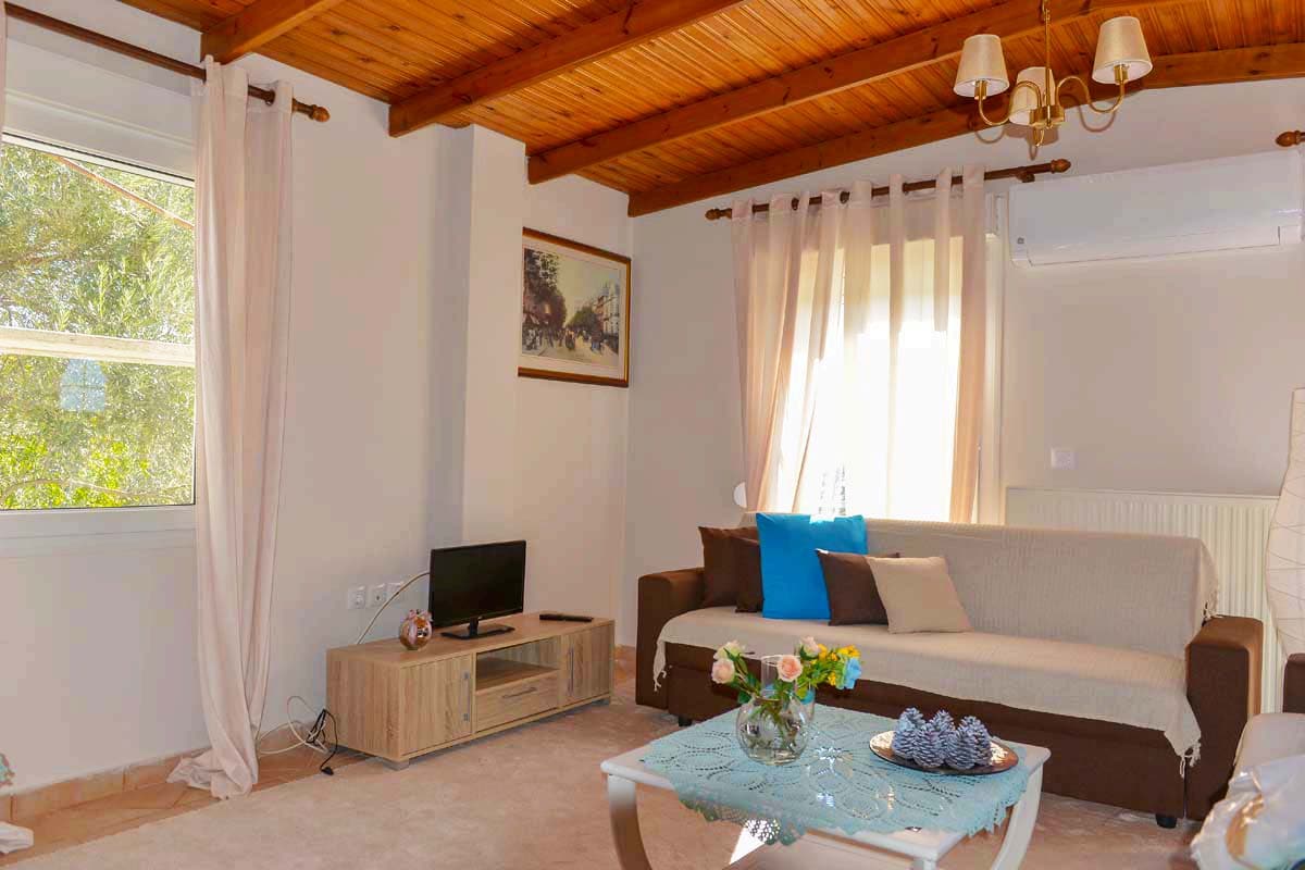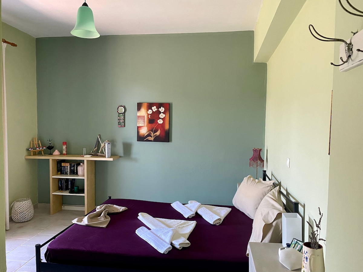 A stone cottage once a farm house opposite the beach with a conservatory and an extra independent stone room . It has a BBQ area with a wood fire oven and a large monastery table . Pick your own vegetables, figs, pears, grapes, apples and peaches which are in the garden. Eat on the beach meters away from the house at tradition fish taverns. You can go into the village and have ouzo with locals ,visit the hot springs, go to the salt pit and observe the pink flamingos.