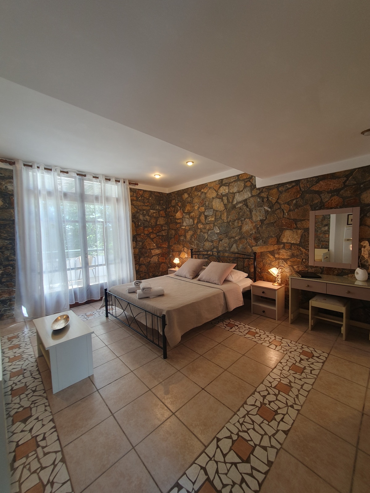In the heart of the village of Eressos, the birthplace of Sappho, on the island of Lesvos in Greece, we lovingly restored the family's 1850s mansion and converted it to The Eressian Hotel: a unique Villa Hotel concept with two suites, two rooms & a beautiful living room. Right next to it, we built the Eressian Hammam & Spa, a sanctuary of well-being, offering a variety of hammam & spa treatments. This lιsting is for the Niki Deluxe Room on the 1st floor of the Eressian Hotel :-)