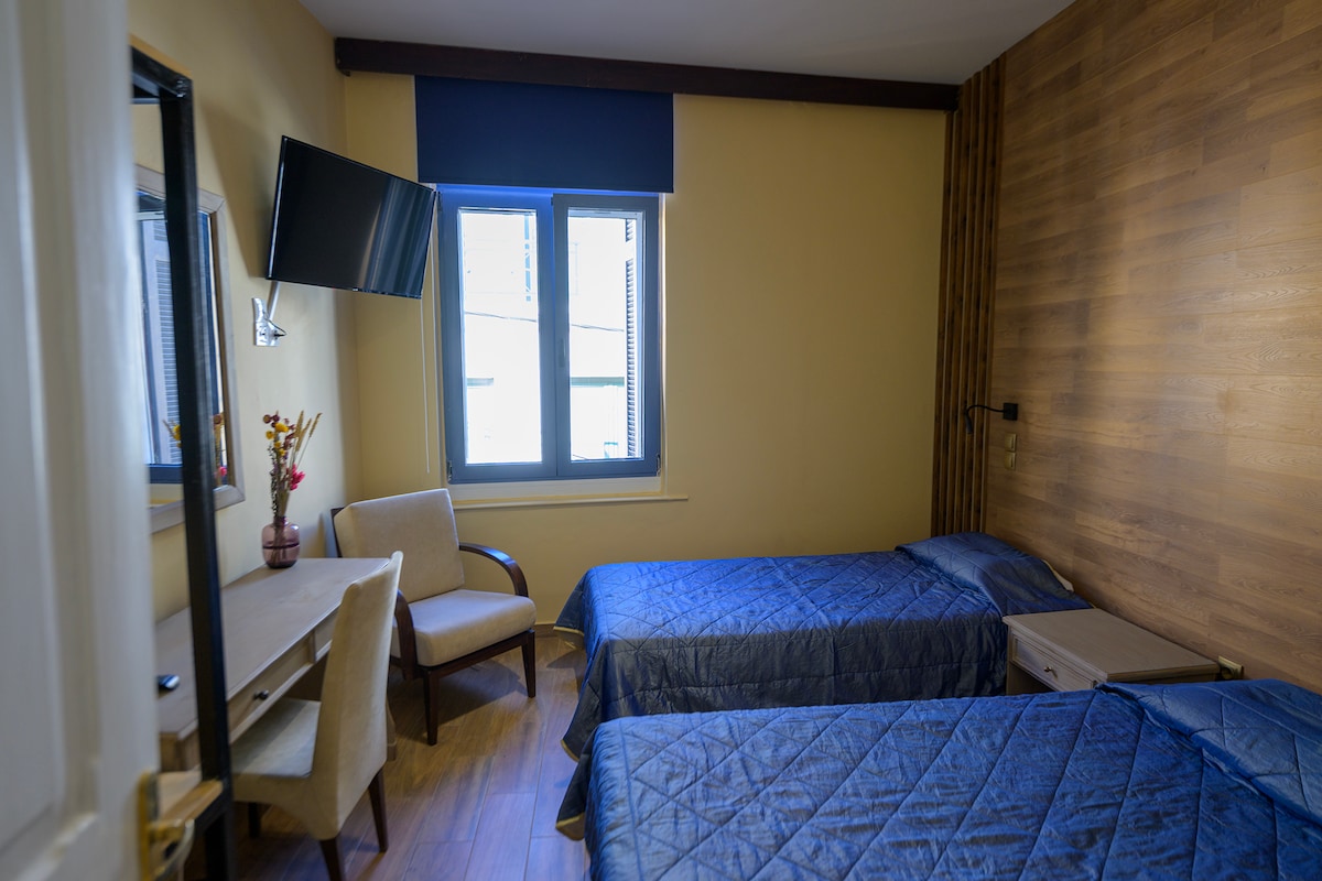 Καλωσορίσατε στο deluxe δωμάτιό μας, ένα ιδανικό καταφύγιο στο κέντρο της πόλης. Αυτός ο χώρος διαθέτει 2 μονά κρεβάτια, Η μικρή κουζίνα είναι εξοπλισμένη ώστε να προσφέρει τη δυνατότητα να ετοιμάσεται πρόχειρα γεύματα και να απολαύσετε στιγμές χαλάρωσης. Η τοποθεσία είναι ιδανική, με κοντινές αποστάσεις σε αξιοθέατα, καφέ και εστιατόρια. Παρέχουμε όλες τις σύγχρονες ανέσεις, όπως Wi-Fi και κλιματισμό, για μια άνετη διαμονή. Ανυπομονούμε να σας υποδεχτούμε!