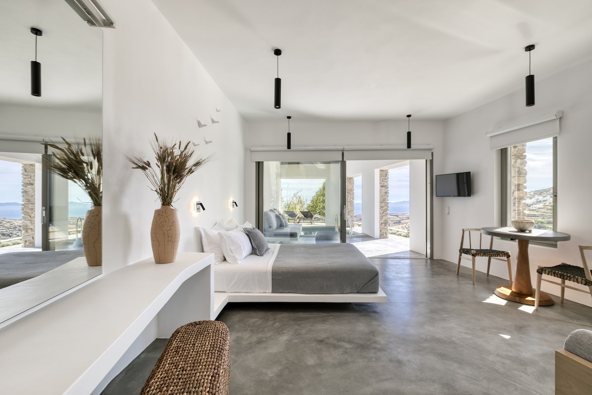 This suite offers a bathroom with a rain-fall shower and complimentary toiletries. Wake up to the tantalising breeze preparing you for the Greek breakfast experience and indulge in our room service delicacies at any time of the day. Enjoy conveniences like a safe box, a coffee machine, a smart TV and high-speed Wi-Fi. Featuring a balcony with comfortable outdoor furniture and panoramic views of the island and sea as well as a King-size bed. Max occupancy: 2 persons | Interior:27 m² / 291 ft² |