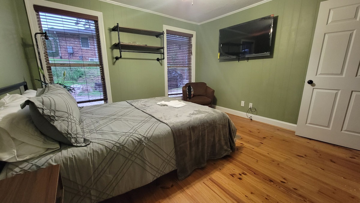In prestigious Summerville. 5 min from Augusta National Masters Golf & Savannah River. Historic craftsman home. TV in bedroom & living room. Recently updated ventless AC system. Totally remodeled bathroom in March 2023 with linear shower & separate freestanding tub. New Rohl designer fixtures, sink & toilet, marble sink & herringbone heated floor. High coffered ceilings, Hardwood floors. Cable, streaming, Wifi. 5 min to MCG, ASU, University Hospital. Village nearby with cafes and restaurants.
