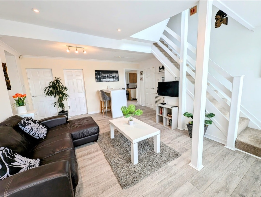 Gorgeous first floor 2 bedroom apartment in a quiet area in the commuter town of Johnstone. The train station is a 2 minute walk with Glasgow central just 2 stops away. Glasgow airport is 10 mins by car and it’s 25 mins to Loch Lomond, it’s 15 mins from Glasgow city and 1 mile from the M8 motorway. You are minutes away from plenty highly rated restaurants, supermarkets all within walking distance, linen, towels, free wifi, 50 inch tv with free view, access to Netflix and access to Amazon prime