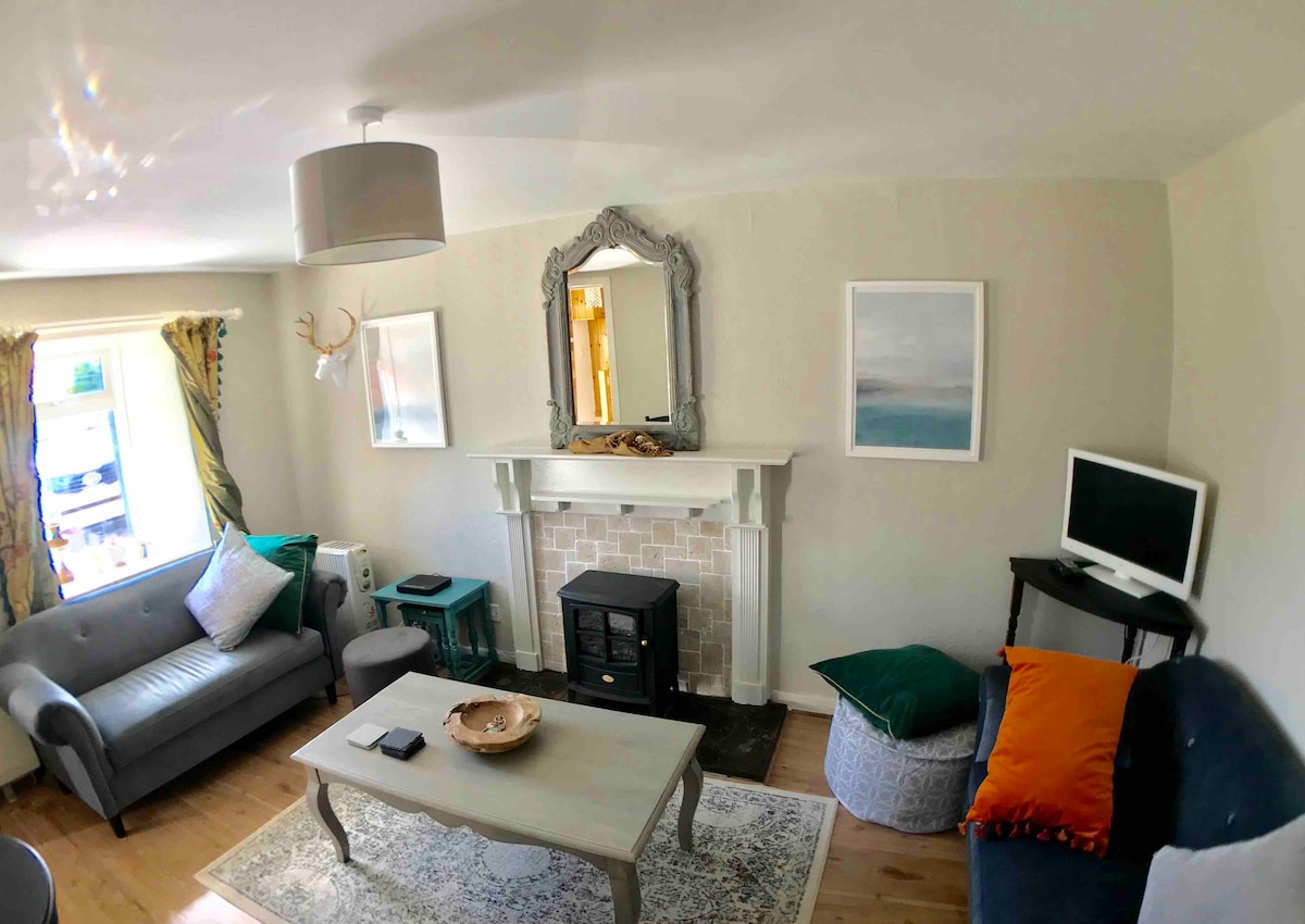 舒适的海滨乡村小屋,配备燃木壁炉,可欣赏美景