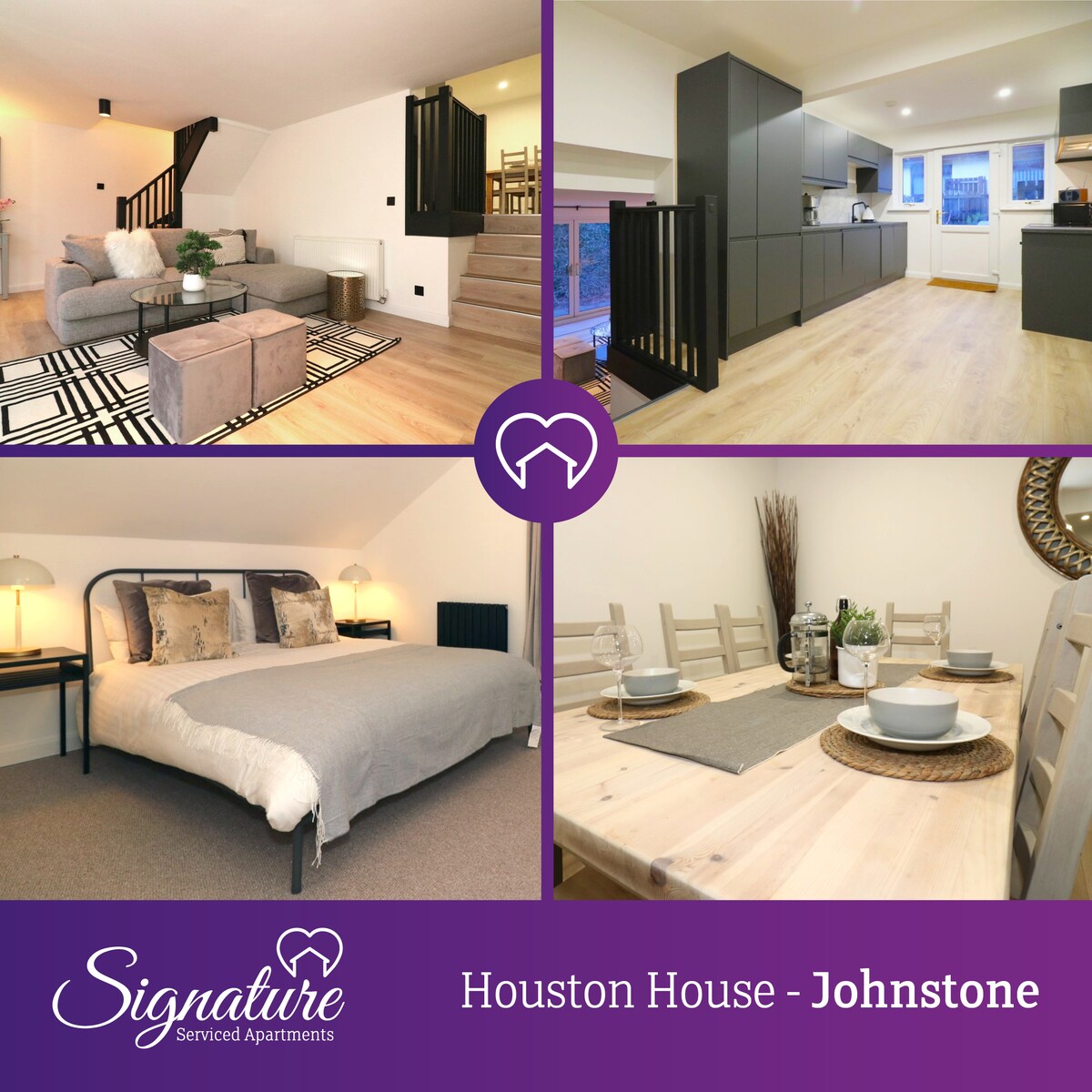 Stylish 1-bedroom ground-floor apartment in coastal West Kilbride. Sleeps up to 3 guests with a king bed (convertible to twins) and sofa bed. Features a 55" Sky TV, high-speed WiFi, modern kitchen, and sleek bathroom. Minutes from the beach, local artisan studios, and Portencross Castle. Free on-street parking. Perfect for short breaks or longer stays (30–180 days) with discounts available.