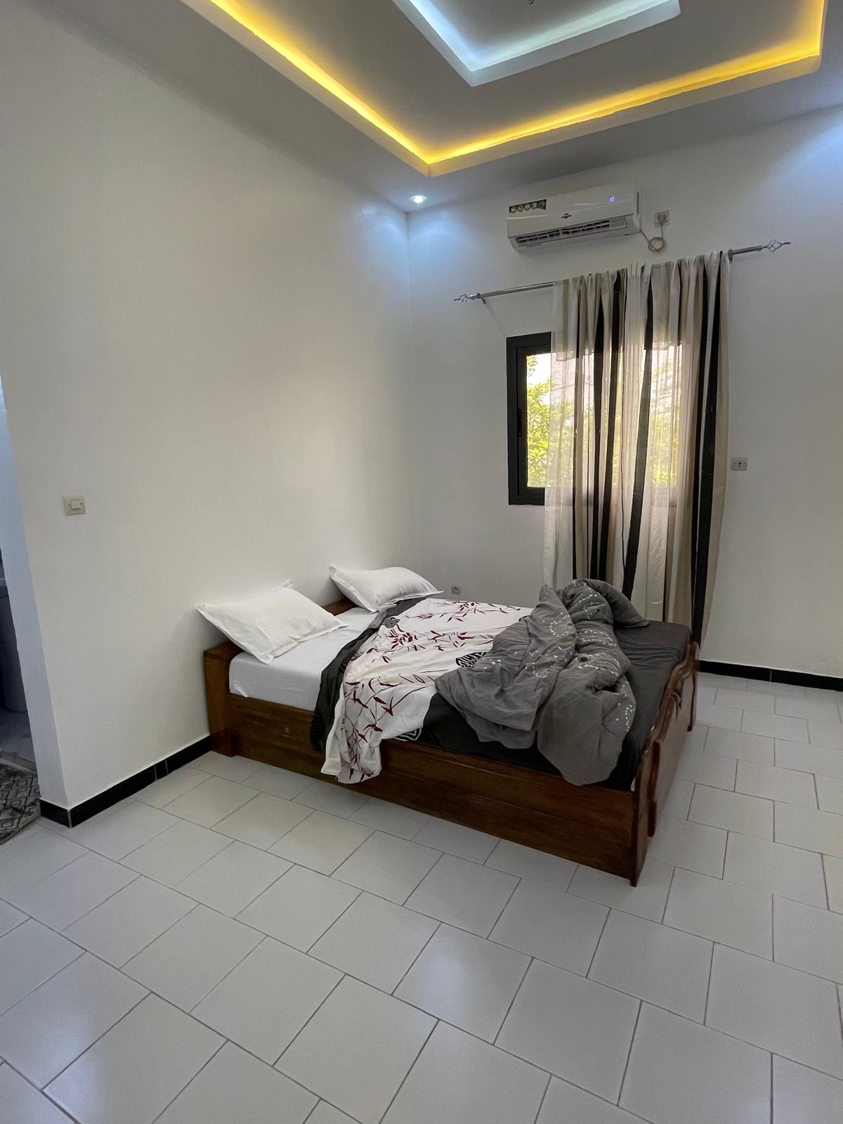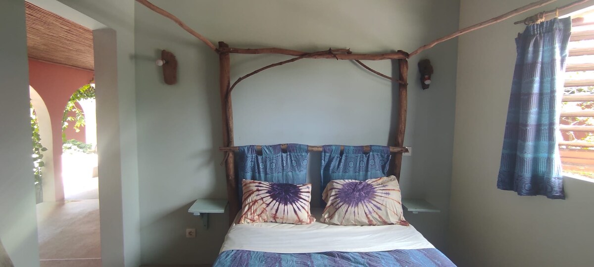 1 case traditionnelle sénégalaise (avec salle de bain équipée) dans un terrain privatif avec très beau jardin. Climatisation dans la grande case Logement unique A cela s'ajoute une très belle cuisine-terrasse ouverte, ombragée et équipée. situation proche du centre dans un endroit très tranquille (peu de voisinage). Le Village est à 5 minutes à pied. Deux piscines se situent à proximité. Le Siné Saloum est à 5 minutes à pied
