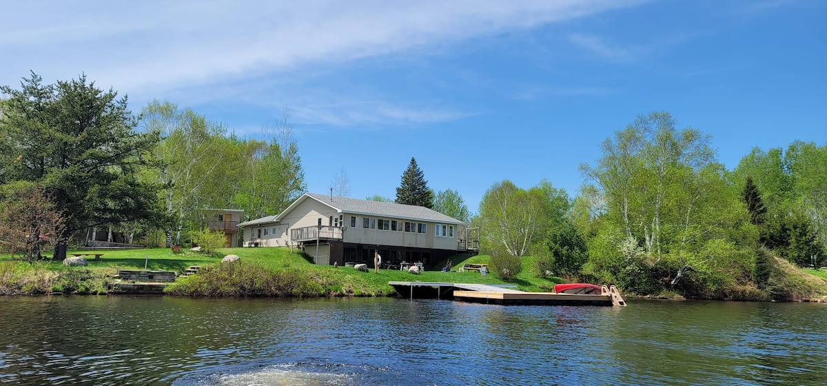 Waterfront Quiet, Cozy, Fully insulated Classic Cottage with covered deck and 2 docks on a quiet, pristine twin lake system (Grass, Loon Lakes) just outside Huntsville in Kearney Ontario. We cater to couples and single families who need to take a break, relax, recharge, or just get away! Fully equipped, with recently renovated bathroom. High speed wifi internet(Starlink), Netflix, Crave, Bell fibe etc., BBQ, coffee maker, microwave, fire pit, firewood. Everything you need! Hikers welcome.