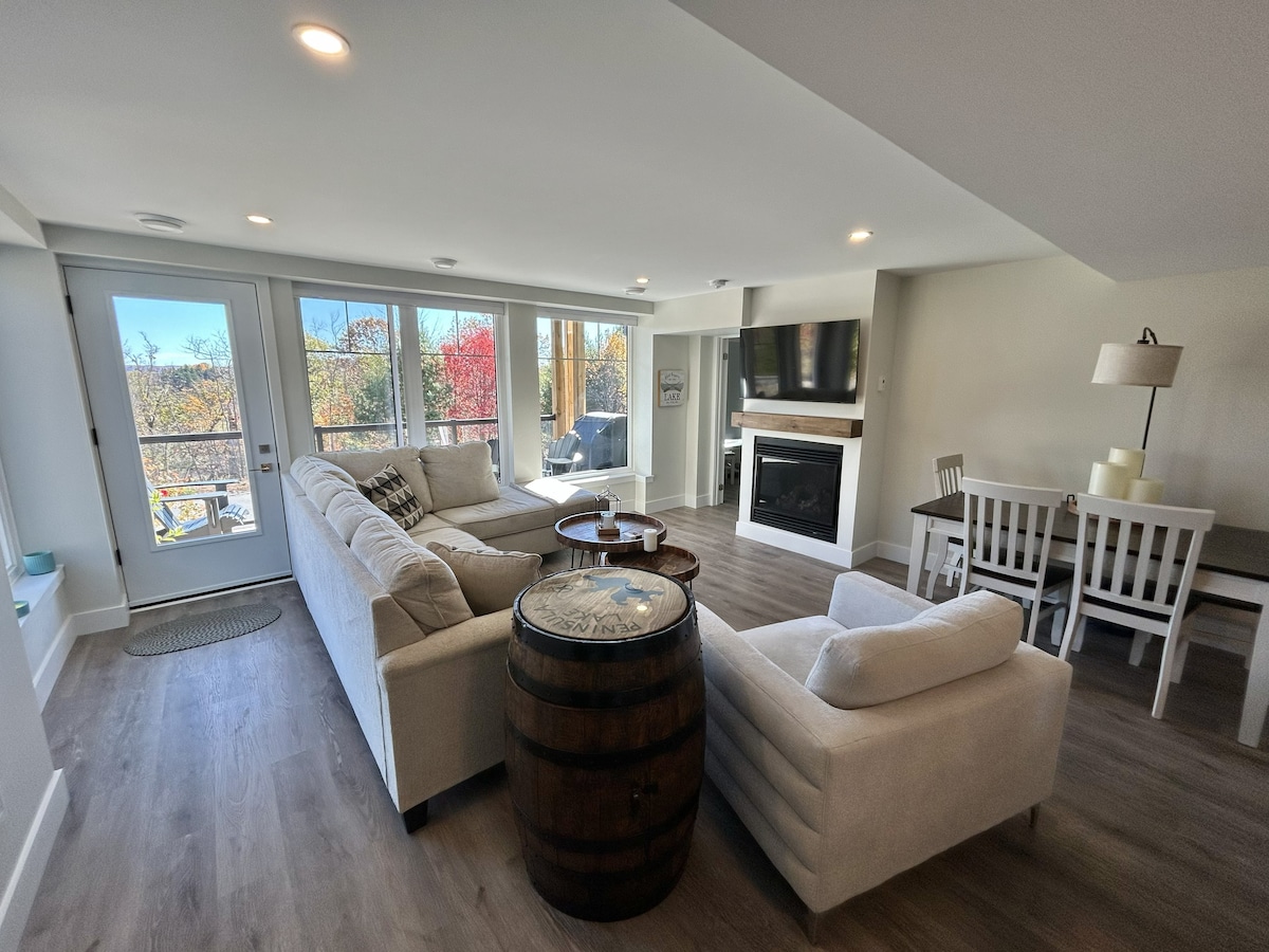 Kick back and relax in this calm stylish newly constructed modern 2 bedroom on historic La Vase river attached to Lake Nipissing excellent fishing on federation snowmobile trail 3 mins to golf course 3 mins to casino 3 mins to kate pace way walking trails High end appliances High speed internet,large smart tv boat launch docks fire pit gazebo swimming pool ample parking dedicated work space kayaking canoeing access to all deliveries. very serene and private also check out Copperhead Cove B