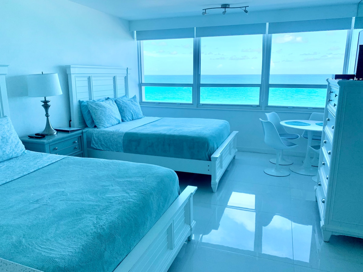 Welcome to Pure Miami Beach! Escape to this modern beachfront studio in sunny Miami Beach, Florida, with breathtaking 180° ocean views. Relax in a plush king-size bed, stream on a 65” 4K Samsung TV, or work with private 300mb WiFi and ethernet connections. Stay fit in the renovated gym, then unwind by the sparkling pool with direct beach access, lounge chairs, and a tiki bar for tropical drinks and bites. Free parking, luxury finishes, and endless ocean vibes make this the ultimate getaway!
