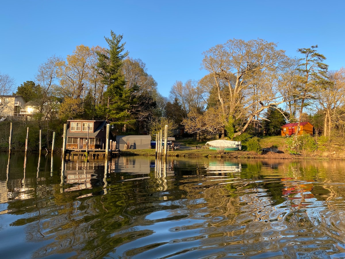 This waterfront cottage is located 2 miles from Historic Downtown Annapolis and the United States Naval Academy, making it easy to plan your visit. It is located right on the South River in a quiet neighborhood. There is a full outdoor seating and patio area with a grill and fire pit. It has a full kitchen, 1 bedroom, washer/dryer and can sleep up to 4 with the pull-out sleeper couch.
