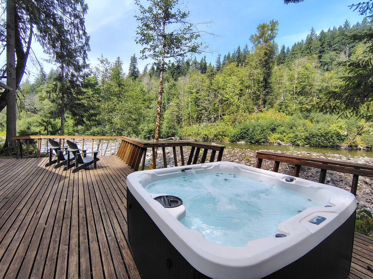 Riverfront Cabin w/ HotTub - 15min to Stevens Pass
