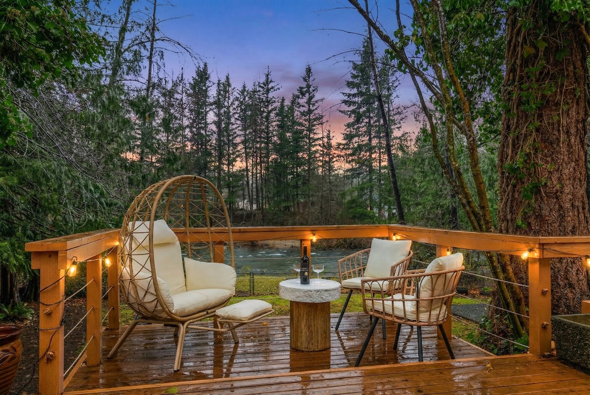 Welcome to SouthFork Serenity by Riveria Stays - nestled along the South Fork Snoqualmie River, our charming cabin offers the ultimate Pacific Northwest getaway, serving as an ideal base for adventurers eager to explore the wealth of outdoor activities in the surrounding North Bend region. After a day of adventure, unwind in the hot tub or by cozying up to the gas fireplace or gathering around the fire pit, basking in the soothing melody of the river and the tranquil embrace of the starry sky.