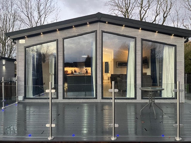 Enjoy some luxury in this top-of-the-range Pemberton Rivendale Lodge. This large 20ft x 40ft lodge (the size of two caravans) is on the lake-front and has a huge south-facing wraparound decking which is the biggest on park. Complete with rattan garden furniture which means you can comfortably enjoy the sunshine all day long. This lodge has a high specification interior complete with a fully fitted kitchen including American-Style fridge freezer, full-size dishwasher and washer-dryer.