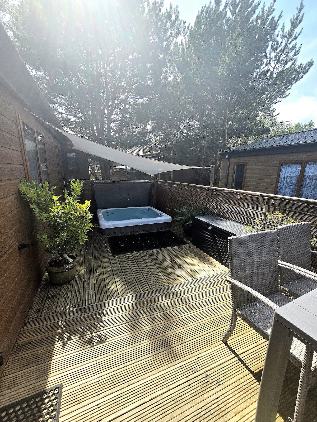 Luxury Hot Tub Lodge | Golf Views | Free Golf | Dog-Friendly | Northumberland Unwind in style at this beautiful lodge with panoramic golf course and countryside views. Enjoy a private San Pedro 6-seater hot tub, two en-suite bedrooms, fast Wi-Fi and Smart TVs — perfect for romantic escapes, family breaks, or a golf getaway. You’ll also get FREE unlimited access to the on-site 18-hole golf course, plus easy self check-in and free parking right beside the lodge.