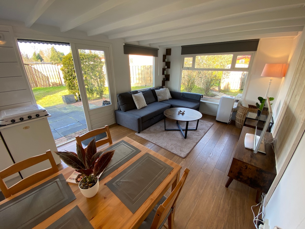 Knus & stijlvol huisje in Oisterwijk – genieten van rust en natuur Sfeervol huisje, gelegen op een rustig park in het prachtige Oisterwijk. Charmant verblijf met zorg ingericht en combineert vintage meubels met natuurlijke tinten voor een warme en huiselijke sfeer. Veel lichtinval door grote ramen en een gezellige eet- en zithoek. Privé parking, afgescheiden tuin, volledig ingerichte keuken (combimagnetron) en smart-tv. Gelegen tussen Oisterwijkse bossen en vennen. Heerlijk wandelen/ fietsen.