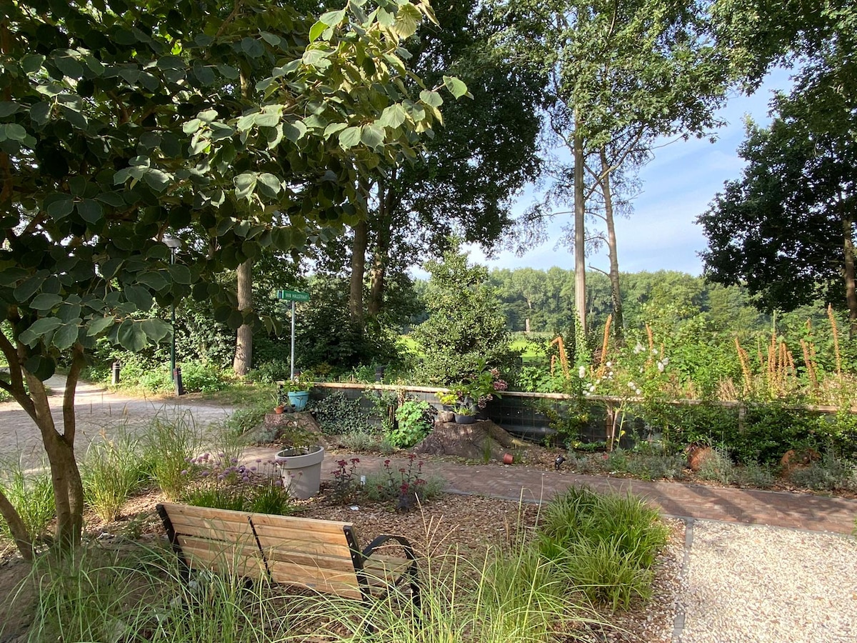 Maasbommel is gelegen in het prachtige landelijke Land van Maas en Waal in recreatiegebied De Gouden Ham, aan de Maas. Hier kun je fietsen, wandelen, zwemmen, bootje huren, uit eten, bowlen, watersporten etc. De voormalige koeienstal is nu een sfeervolle ruimte met royale slaapkamer, inloopdouche, zithoek, tv, volledig uitgeruste keuken. Ons appartement heeft een prachtig uitzicht op de grote tuin. Naast de eigen opgang staat een tuintafel met stoelen om heerlijk in de zon te genieten.