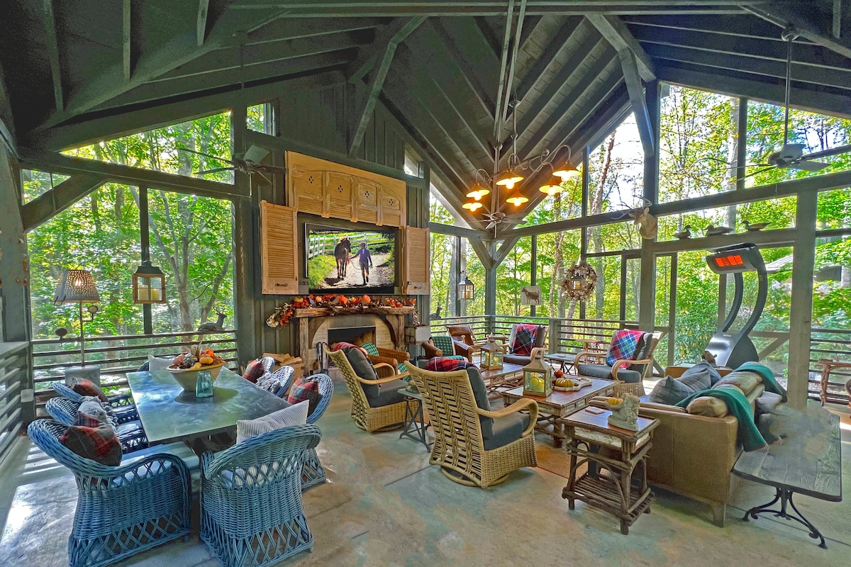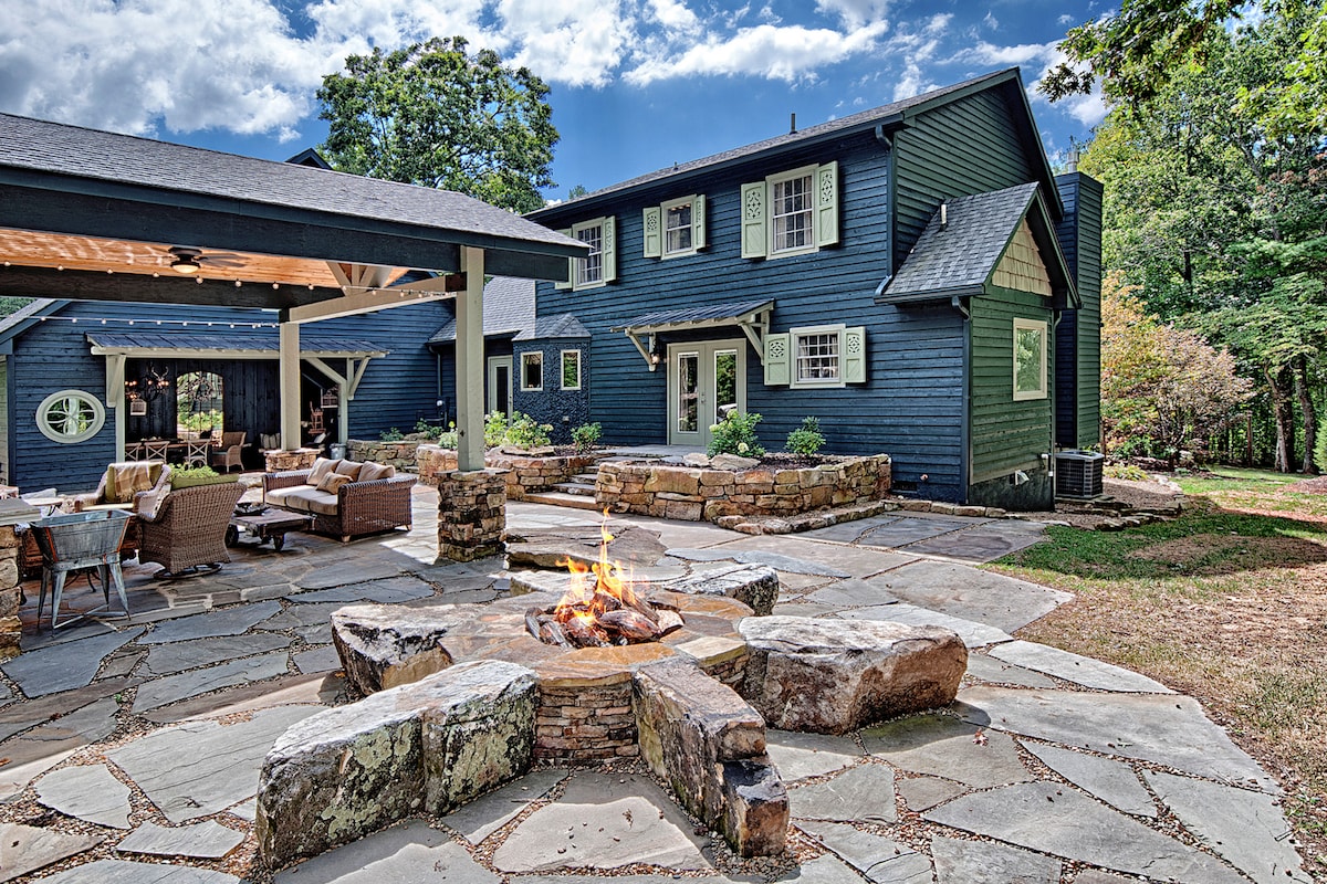 🏞️ Welcome to Brook Knoll – The Newly-Renovated Premier Mountain Retreat Near Asheville! This 8BR luxury escape just 18 minutes away from Asheville is designed for ultimate comfort and entertainment. Perfect for gatherings or trips with friends & family. Featuring premium bedrooms (sleeps 24), a fully equipped kitchen, theater, gym, two gaming areas, hot tub, barrel sauna, and a fenced seasonal pool. It’s the ideal blend of fun, convenience, and upscale living that's perfect for your vacation!