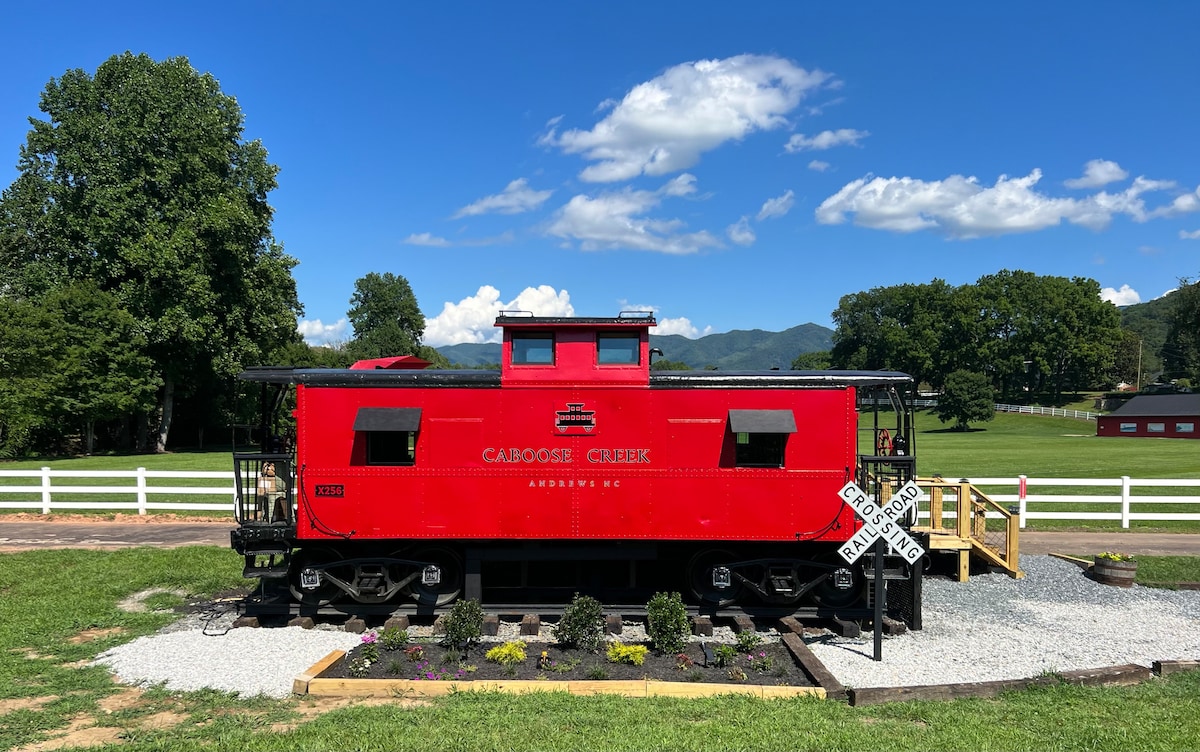 Take a trip back in time to the 1930s and experience staying in a little red caboose in Andrews, NC. This one of a kind, fully renovated, Southern Railway caboose is located on 2 riverfront acres with stunning mountain and valley views. The caboose has all of the comforts of home as well as an amazing deck and outdoor area where you can relax along the riverfront or fish for dinner. Visit historical downtown Andrews, where you will find restaurants, shopping, breweries, a winery and much more.