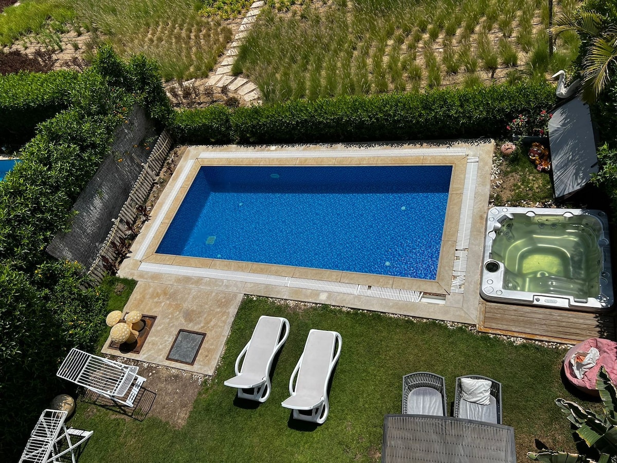 If you seek tranquility and comfort with your family by the turquoise sea, a white sandy beach, a private garden, and a terrace overlooking the water, welcome to the Riviera Villa. Featuring a large rooftop with stunning sunset views, this villa offers elegance and readiness in all aspects of comfort. Enjoy modern design, sea views, spacious bedrooms with AC., a well-equipped kitchen, a lounge with a large TV, an expansive terrace, a BBQ area, pools, sports fields, a play area, and restaurants.