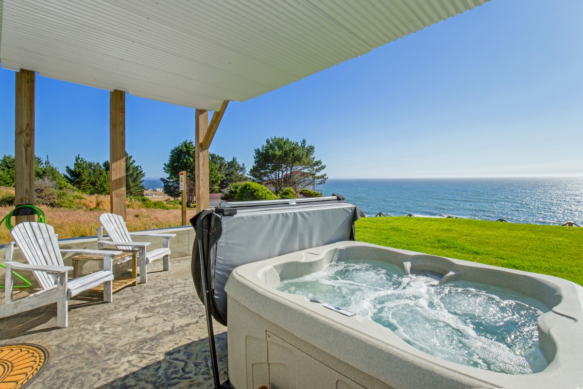 A rare and spiritual healing place with stunning oceanfront views from a 6-acre bluff paradise. Watch whales and bald eagles from the hot tub. The cottage is heated by propane and also has a wood burning stove. We offer the option of wine, flowers, rose petals on bed and balloons for wedding proposals, anniversaries, birthdays etc - ask for our price list. We are pet friendly and charge an additional $25 a day per pet up to 3 pets. There is a home 100 ft away that shares the 6 acres. No TV.