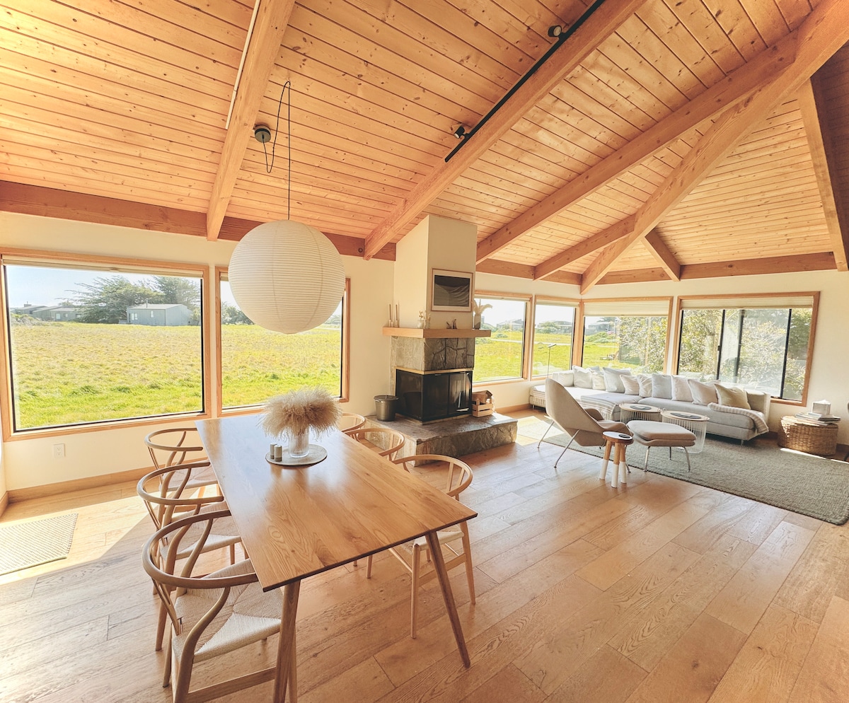 Experience all The Sea Ranch has to offer when you stay at our modern Sea Ranch home in a light-filled living space with golden meadow views. Our family-friendly home with 2BR + kids loft / 2BA is located at the north end of Sea Ranch. We are a block to the 7-mile Sea Ranch Bluff trail that spans along the entire Sea Ranch coast and a 5 minute drive to the town of Gualala (stores and restaurants) as well as Gualala State Beach, Del Mar Rec Center, and Sea Ranch Golf Course (currently closed).