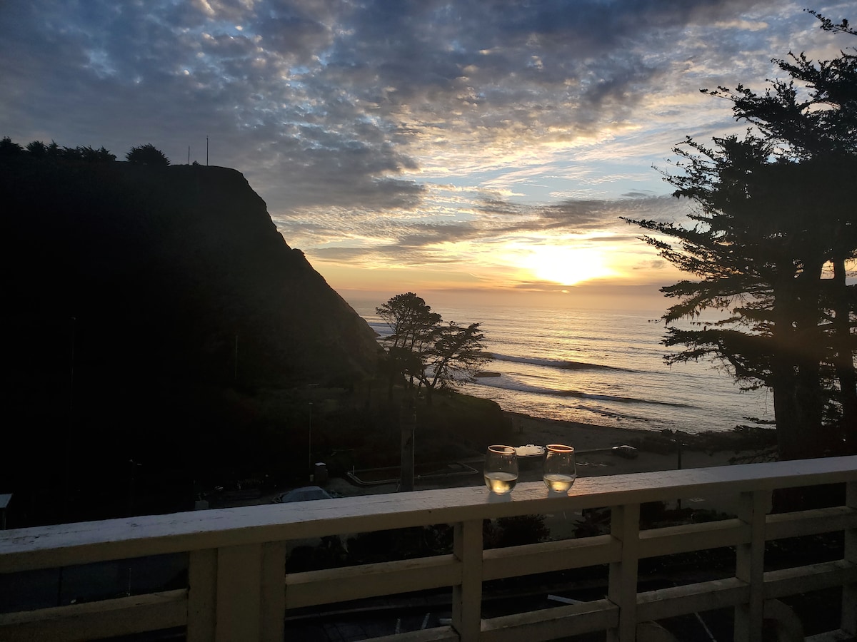 Relax with the whole crew at this waterfront retreat with incredible views of the Pacific Ocean and Robinson Reef from every room, seconds from downtown Gualala. Enjoy morning coffee in the sunroom, spend the afternoon relaxing on the sun-drenched roofdeck, and finish the day with a whirlpool bath overlooking the Pacific. This 4 bed/2.5 bath home provides everything you need for your adventure on the Mendocino coast. New in Fall 2024: New flooring, kitchen, and solar+battery backup!