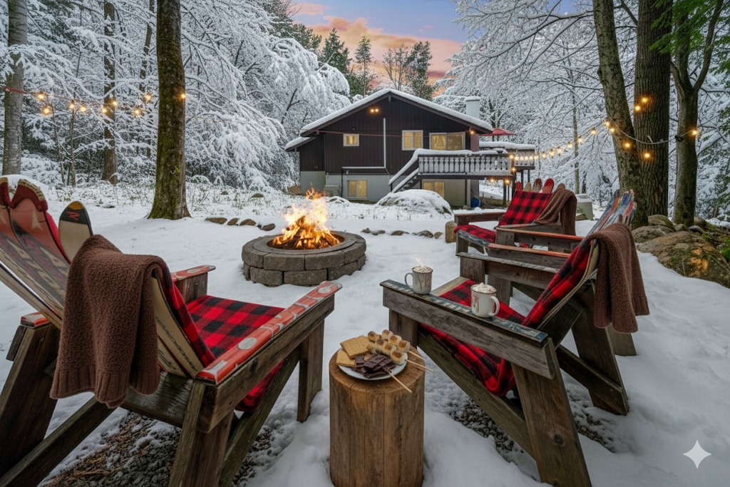Enjoy magical nights under the stars at our outdoor theater—complete with projector, cozy seats, string lights, and blankets. Our private backyard cinema offers a one-of-a-kind experience, just add your favorite snacks! By day, explore the White Mountains with trails across the street, a private river beach in the neighborhood, or visit Jackson’s covered bridge & falls. StoryLand + North Conway are just minutes away. You're at the doorstep to everything the White Mountains have to offer!