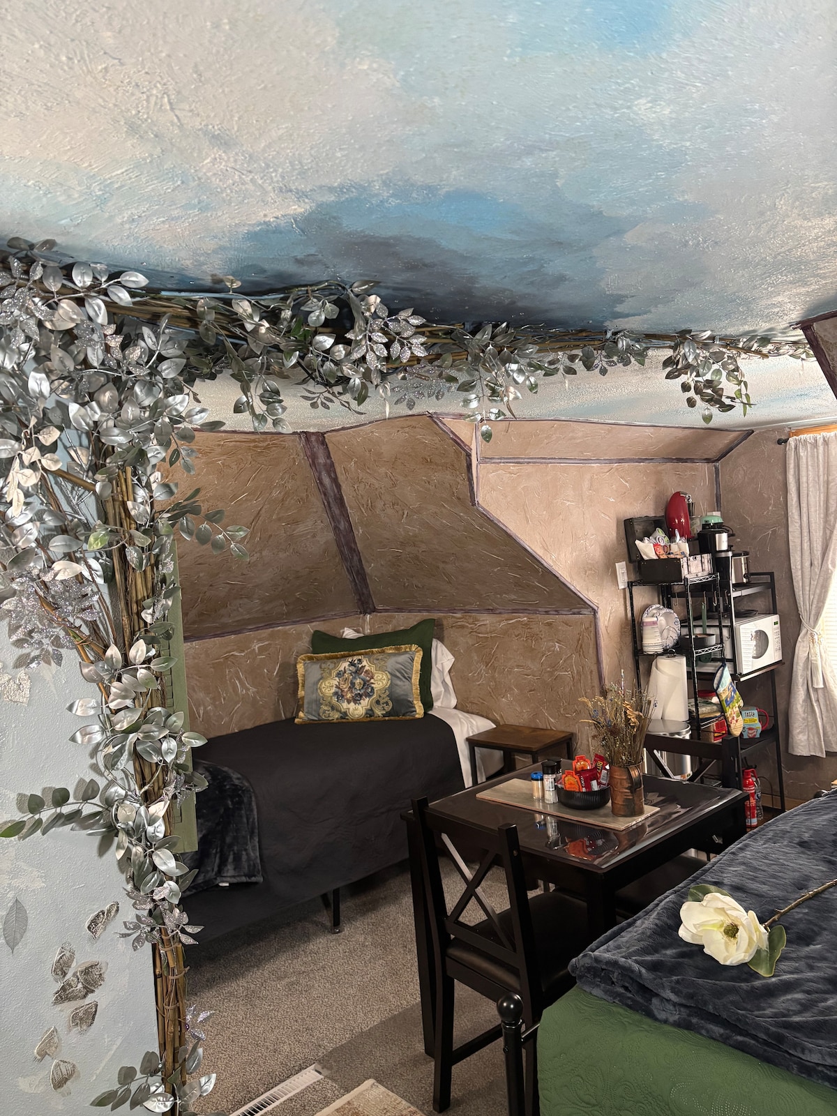 Take a break in this tranquil loft getaway. Grandpa’s Attic is an open-space studio that offers a kitchenette for a dorm-like retreat. There is one twin-size and one queen bed to rest and gaze into the hint of indoor twinkling summer Dakota skies. The private bathroom is fully stocked (towels, soap, etc) with a shower, toilet, sink. Get cozy in the corner to watch TV, read, or enjoy a walk in the peaceful surroundings. Be sure to enjoy the local fares and sights before continuing your journey!