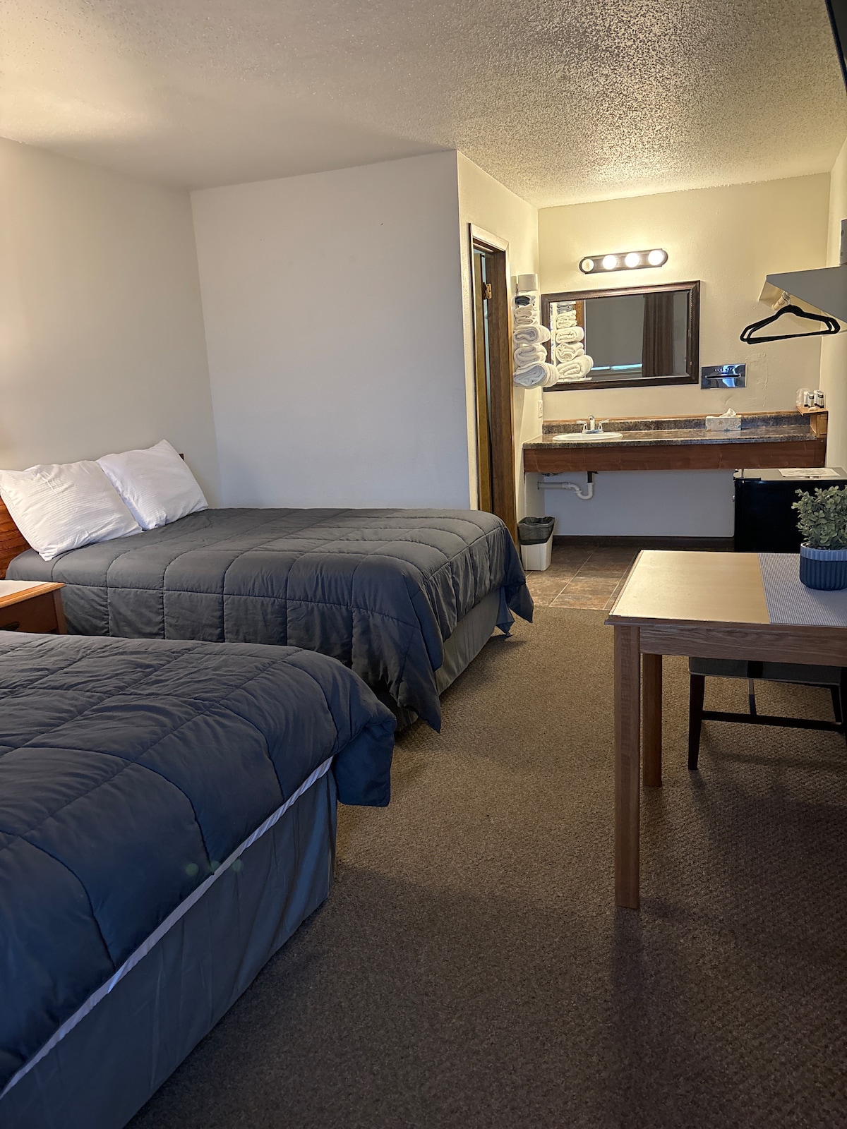 Our studio style hotel room is completed with new flooring and furniture. Includes a queen bed, side table, mini fridge, microwave, toaster oven, dresser, free Wi-Fi, cable tv, and a side chair. Free parking with room for trailers, and a backyard space. We do require photo ID to be sent via Airbnb messages to verify your identification before you’re able to access the property.