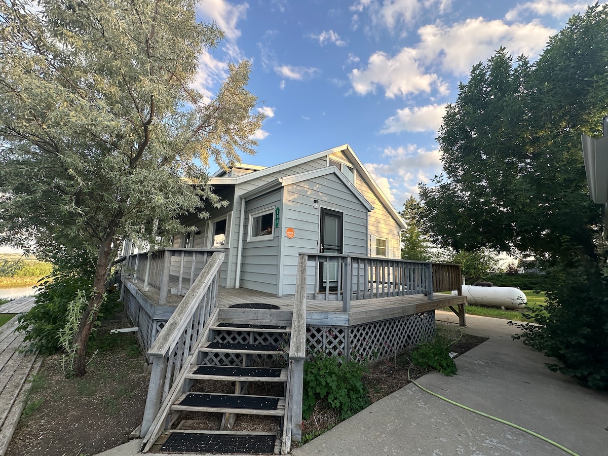 The Abbott’s Anchor Inn is just off Hwy 2 and under 1/2 mile to the nearest boat ramp plus bar and grill. We have off-street parking large enough for a boat. The cozy “duplex” can accommodate 6 guests (2 queen-sized beds and twin bunk beds between 2 rooms), a full bathroom, living room, and dining and a kitchen. You can see Devils Lake from the dining room table, but we are not lakefront property. Come stay with us and see what makes Devils Lake the fishing and hunting paradise of North Dakota!