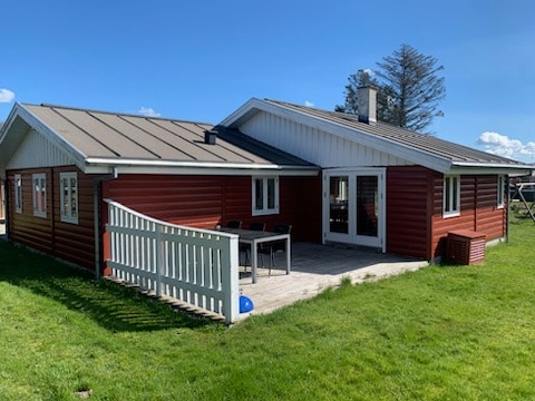 Vores ekstrahus på vores skønne gård har morgensol og middagssol ind i stuen og på terassen. Der er udsigt til havet, og en stor have tilhørende huset. Der er afskærmet over til os, så I får det privat. I får selvfølgelig egen indgang fra gårdspladsen :-) Our extra house has the morning sun straight into the livingroom and outdoor terrace. You have the most beautiful view to the ocean, and a big backyard. You'll have privacy from us by shields we created. You have your own entrance as well :-)