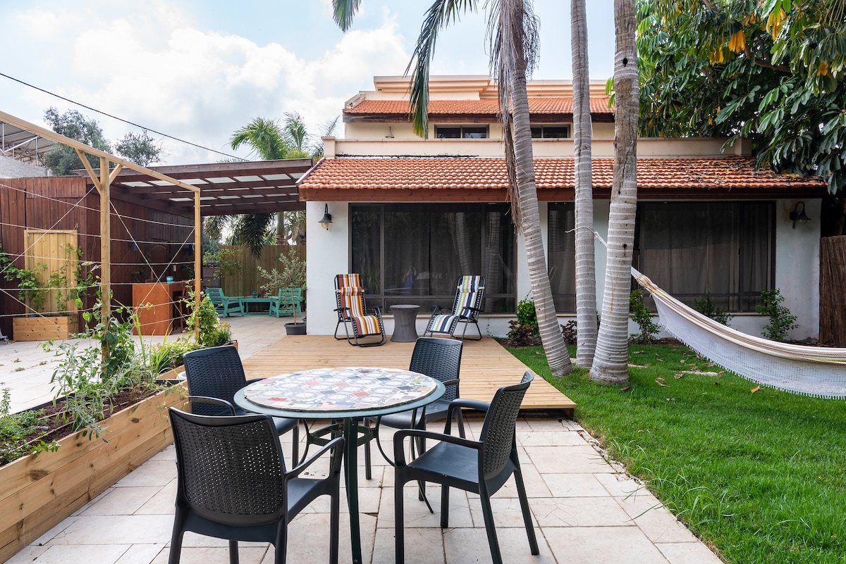Welcome to Bar On Resort. Raspberry is a magical and designed suite on the ground floor, with a fully equipped kitchen, bedroom, living room, and dining area. The suite is suitable for a family of up to 5 people and a baby. Outside there is a private garden with grass, a covered patio with a pergola and deck, a cozy sitting area, garden furniture, a hammock, and a barbecue corner. Adjacent private parking with an electric gate is at your disposal.