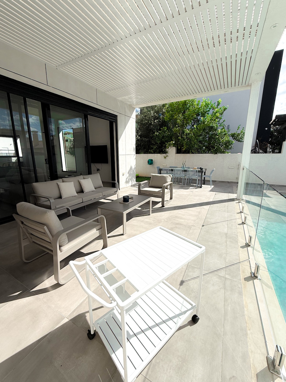 Welcome to Bar-On Resort. Raspberry is a magical and designed suite on the ground floor, with a fully equipped kitchen, bedroom, living room, and dining area. The suite is suitable for a family of up to 5 people and a baby. Outside there is a private garden with grass, a covered patio with a pergola and deck, a cozy sitting area, garden furniture, a hammock, and a barbecue corner. Adjacent private parking with an electric gate is at your disposal.