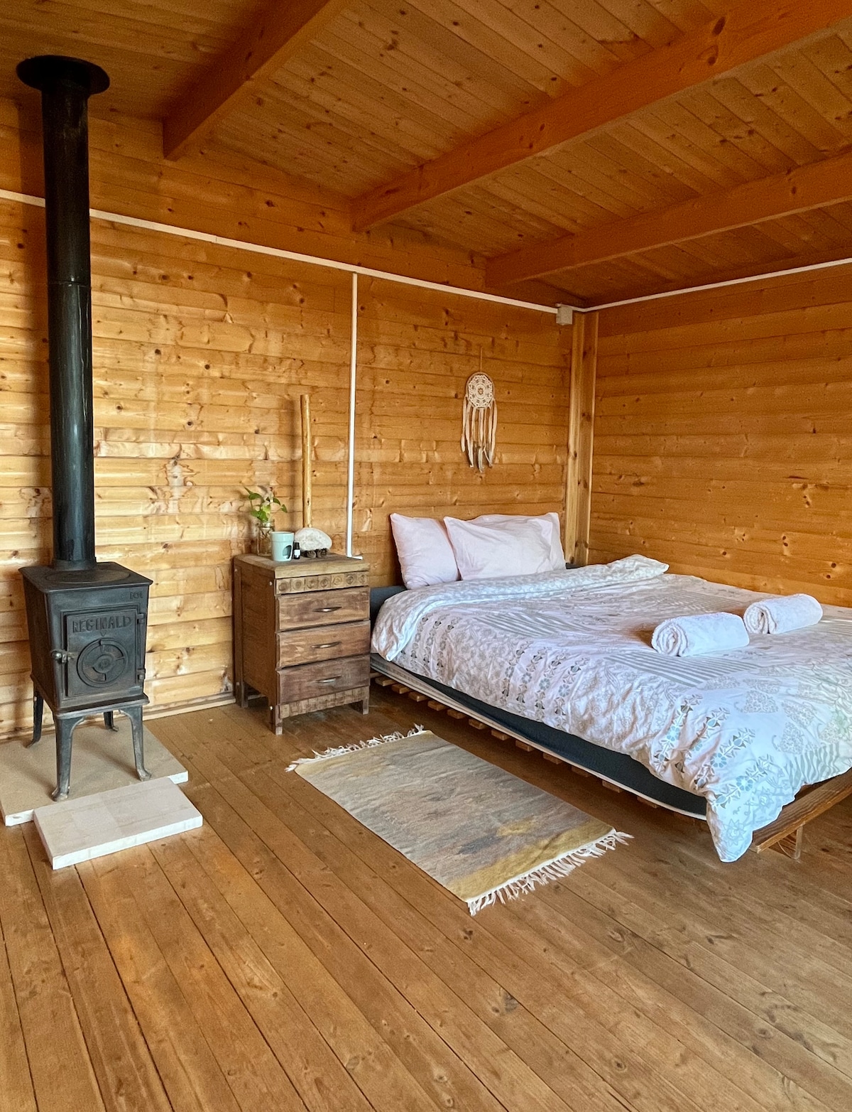 בקתה חמימה מעוצבת ומושקעת בפרטים הכי קטנים לאירוח מושלם, שקט ופרטיות. הבקתה שוכנת בין עצי הדר וצמחיה ובקרבת בריכה (משותפת) וג'קוזי (פרטי). כמה צעדים מהגינה ואפשר לראות נוף גלילי ופיסת כנרת. בקרבה ליקבי בוטיק, מחלבת בוטיק והמון טבע גולני. לבקתה מרפסת עץ מקורה, בר ישיבה להתרגעות עם כוס יין, ונדנדה זוגית מול בוסתן עם גינת עשבי תבלין. קמין חשמלי עם תצוגת אש, פינת מדורה ומנגל גז. מטבחון מאובזר : טוסטר אובן, כירות חשמליות לבישול,תבלינים,מיקרו, מכונת קפה וכלי בישול והגשה. המקום המושלם לטיול הבא בגולן!