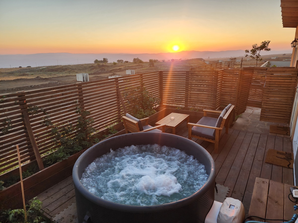 יש ממד! באוויר הרים המשכר של רמת הגולן, בין הרי הגעש הכבויים והמעיינות הצלולים, באמצע הדרך בין הכנרת לחרמון, שוכן מתחם האירוח האקולוגי שלנו. הבקתות בנויות בשיטה אקולוגית, הקירות מצופים בטיח אדמה נטול רעלים ומסביב מתהווה לה גינת מאכל עשירה בפירות וירקות מיוחדים (בעונה). לכל יחידה יש ג'קוזי ספא פרטי, חם ומבעבע באוויר הפתוח מול הנוף. בבקתה הרומנטית יש בנוסף אמבט ג'קוזי פנימי שקוע ברצפה, לחוויה ייחודית. מוזמנים אלינו לחוויה של חופש, נשימה וריפוי.