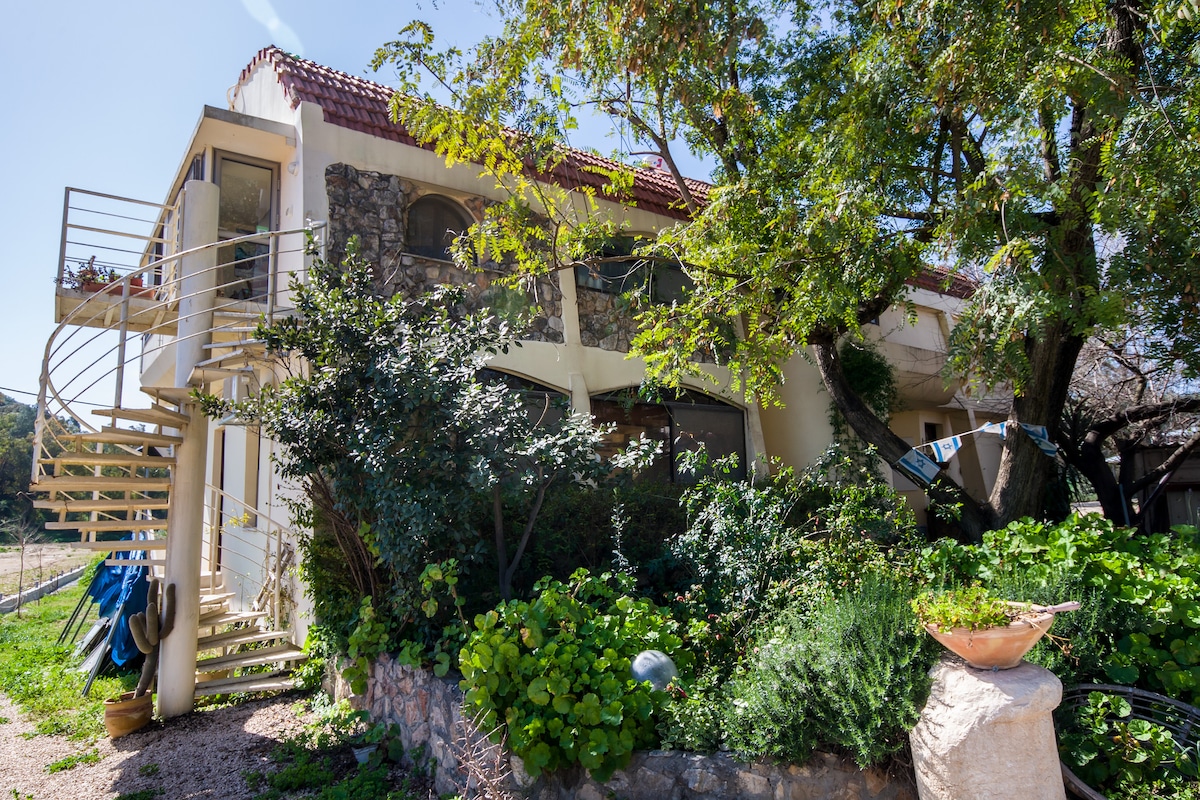 ëŤħņi Galilee - Gino's House unique Guest Suite is located in a quiet and special place, with lots of nature around, among 80 years old - 9 olive trees. The location is convenient and allows quick access to all attractions in the north; Very close to the Sea of Galilee and the Golan Heights. You can relax in peace in all the romantic areas of the house facing the pastoral landscape; In the yard under the Pecan tree, on the spacious balcony, on the hammock or on the swings, wherever you choose.